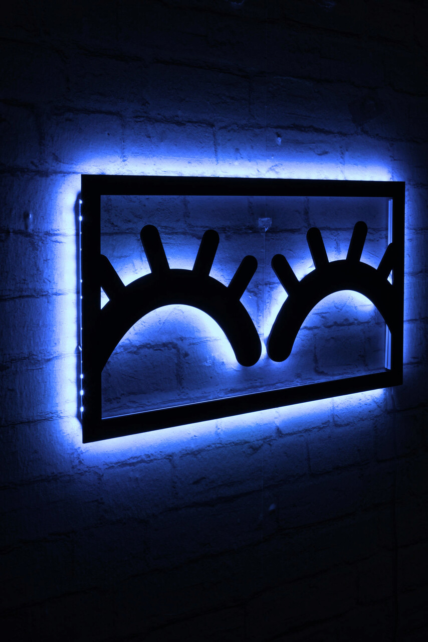 Decoratiune luminoasa LED, Sleepy Eyes, MDF, 60 LED-uri, Albastru