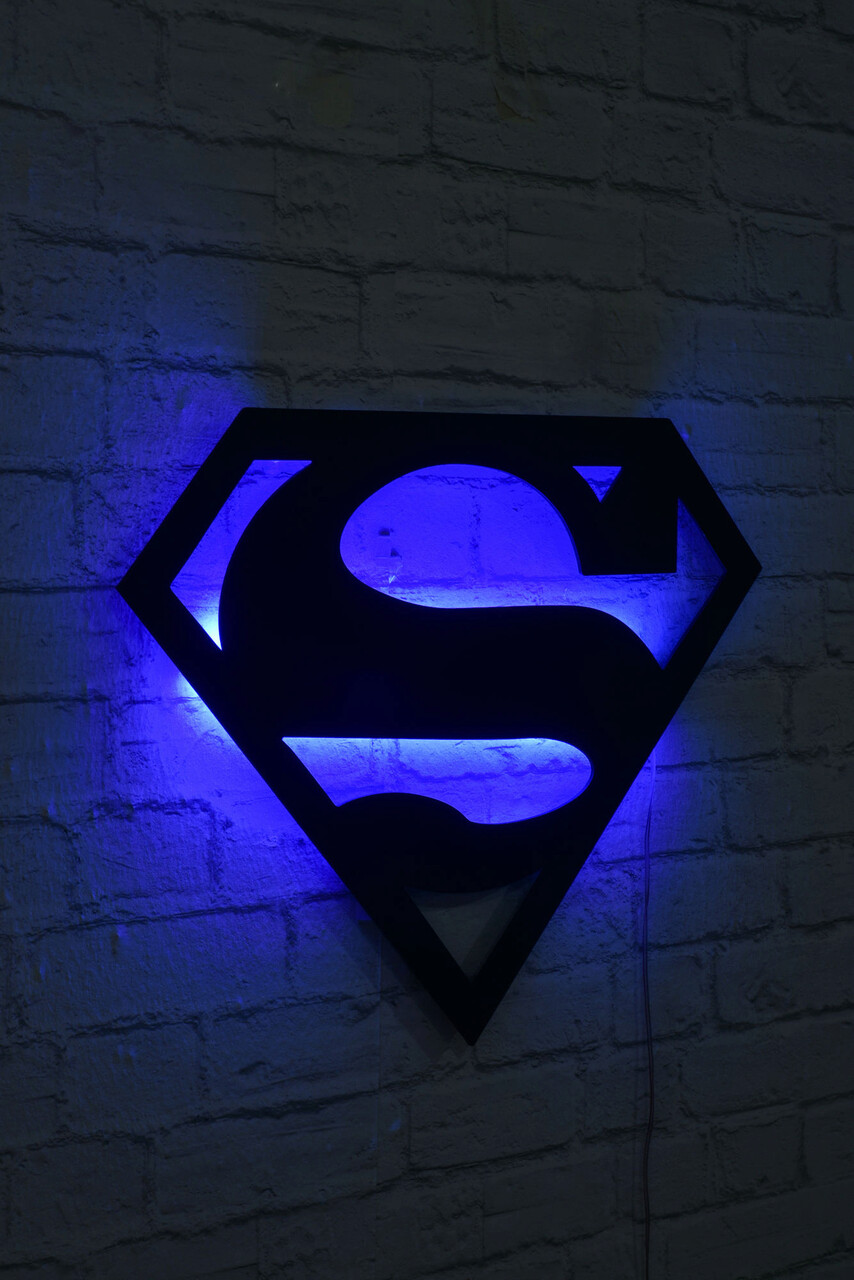 Decoratiune luminoasa LED, Superman, MDF, 60 LED-uri, Albastru