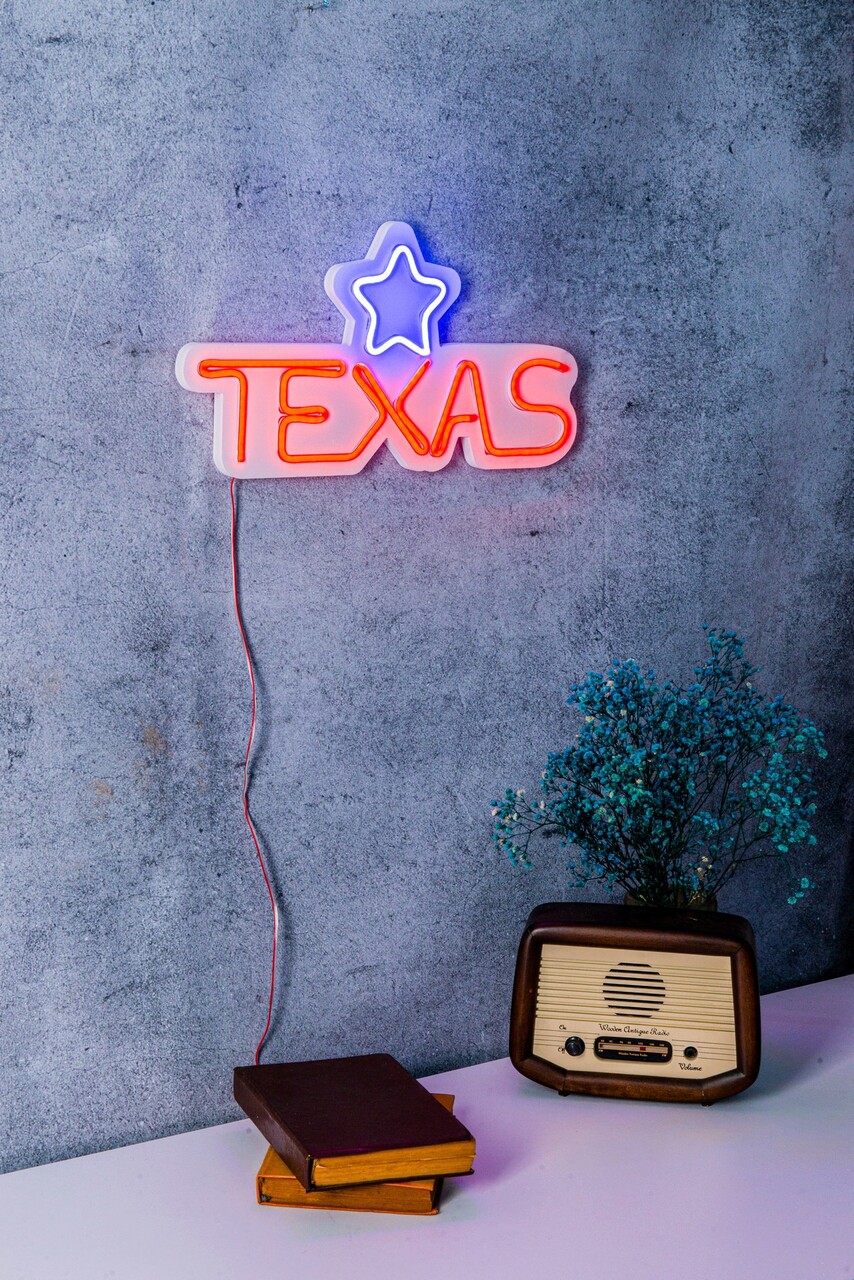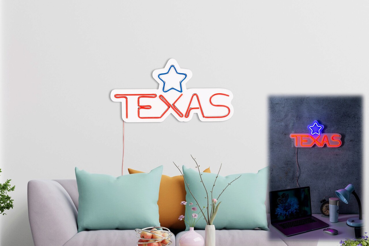 Decoratiune luminoasa LED, Texas Lone Star Blue, Benzi flexibile de neon, DC 12 V, Rosu albastru