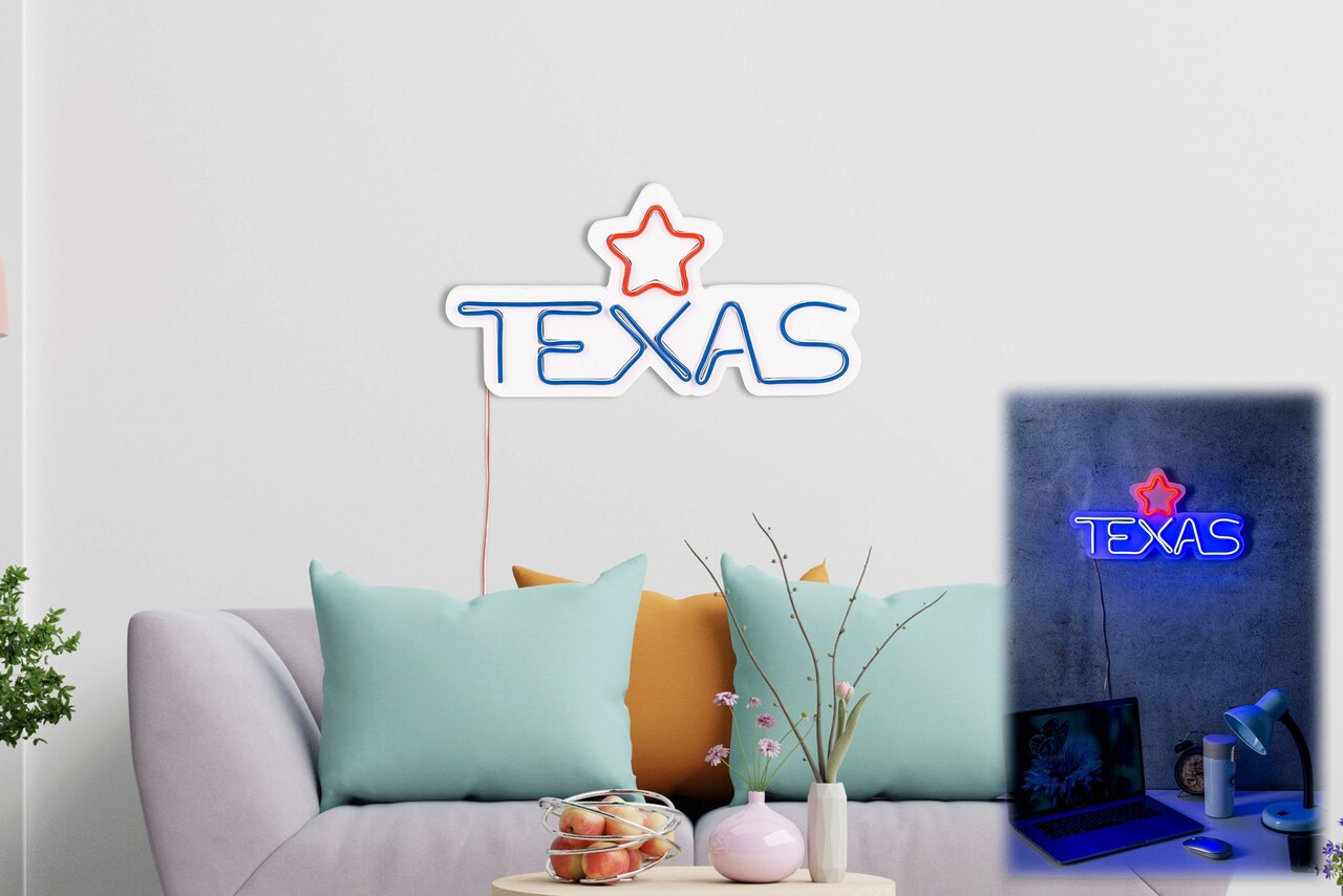Decoratiune luminoasa LED, Texas Lone Star Red, Benzi flexibile de neon, DC 12 V, Rosu albastru