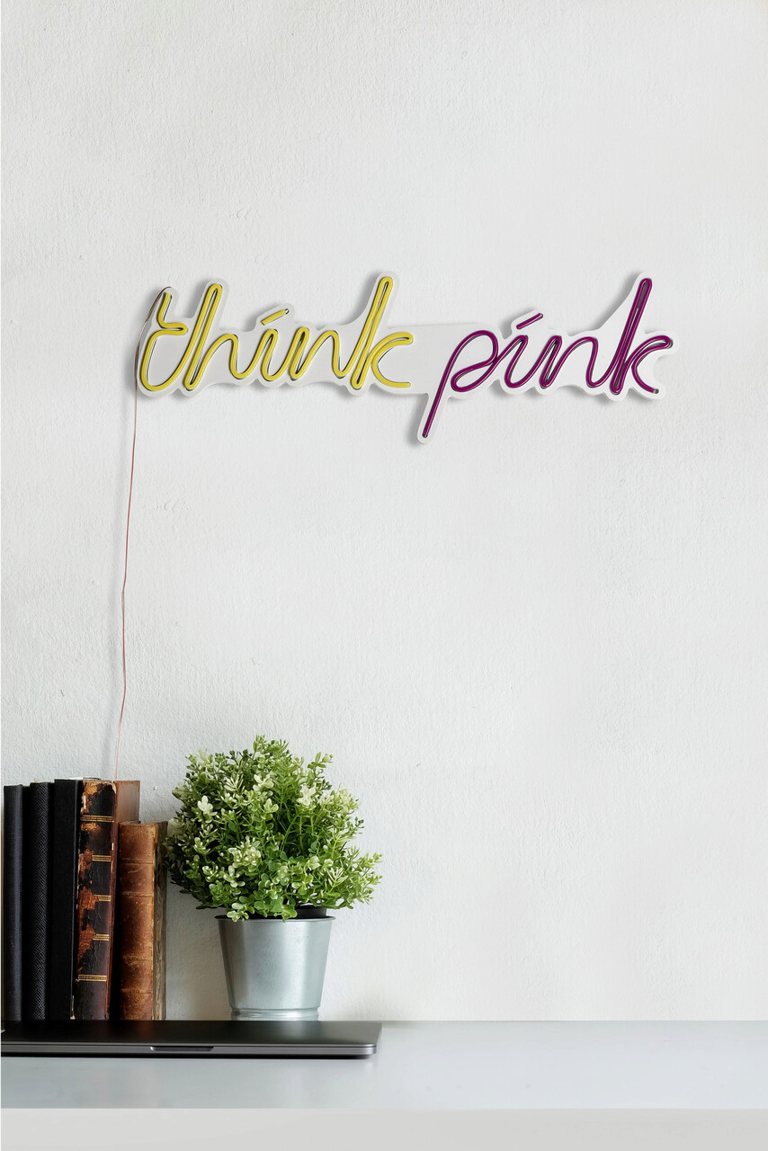 Decoratiune luminoasa LED, Think Pink, Benzi flexibile de neon, DC 12 V, Galben
