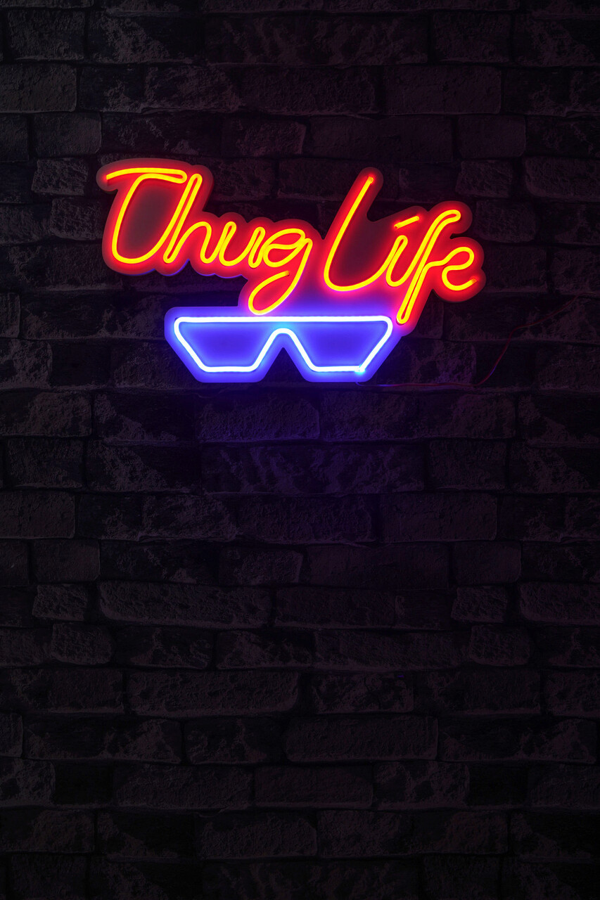 Decoratiune luminoasa LED, Thug Life, Benzi flexibile de neon, DC 12 V, Rosu albastru