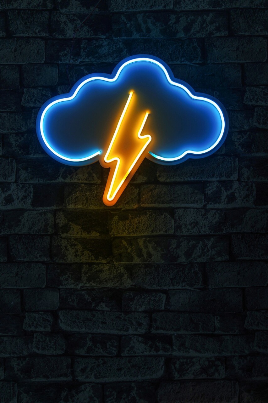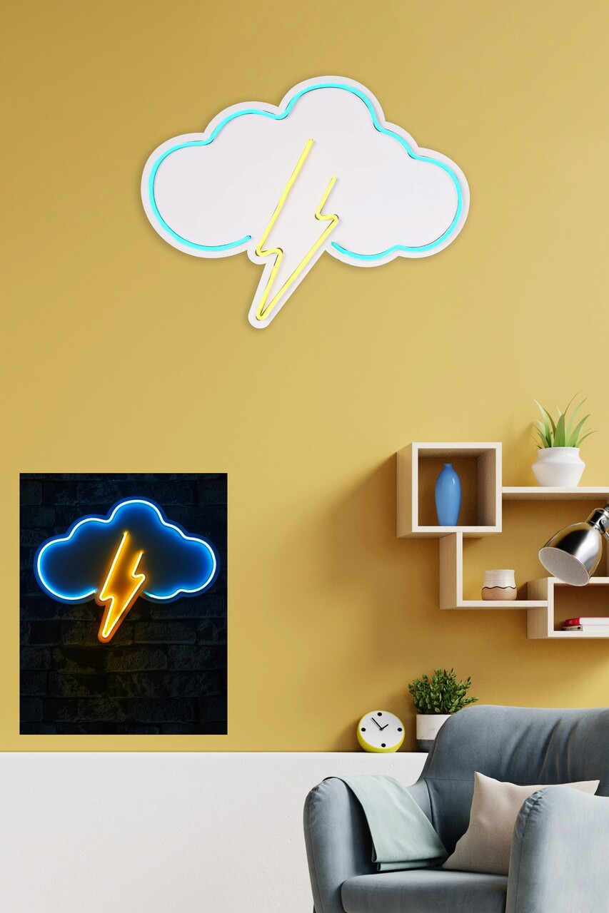 Decoratiune luminoasa LED, Thunder Storm, Benzi flexibile de neon, DC 12 V, Albastru/Galben