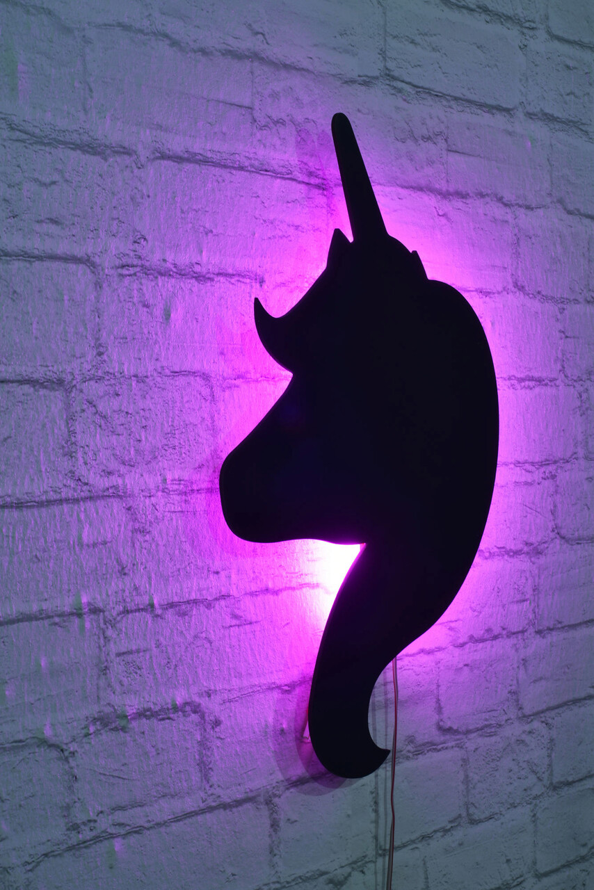 Decoratiune luminoasa LED, Unicorn, MDF, 60 LED-uri, Roz