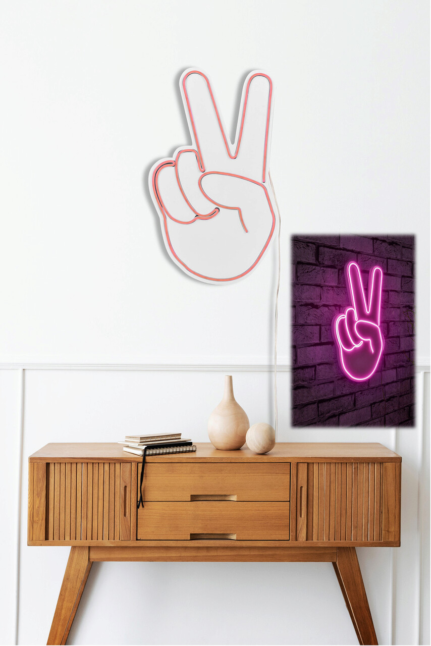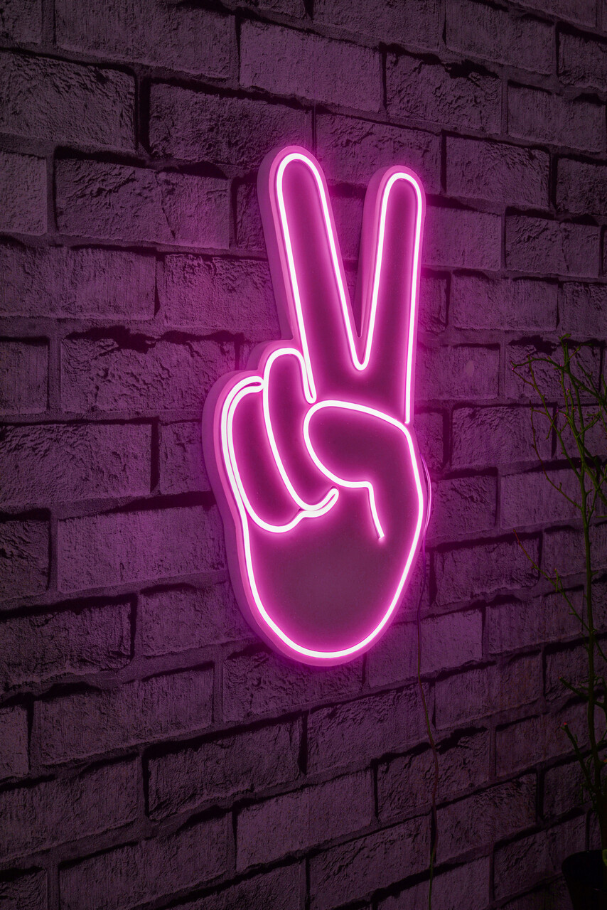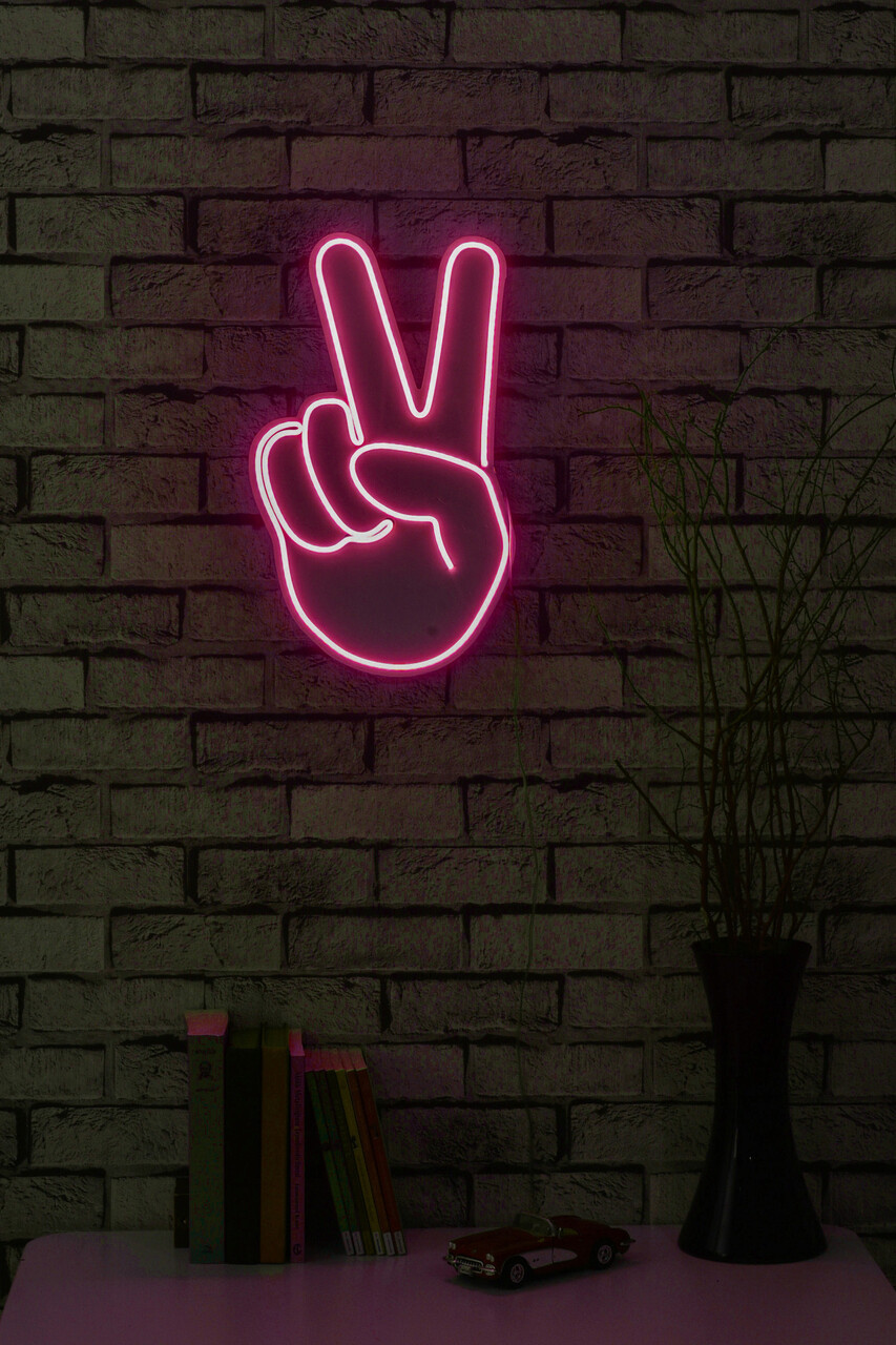 Decoratiune luminoasa LED, Victory Sign, Benzi flexibile de neon, DC 12 V, Roz