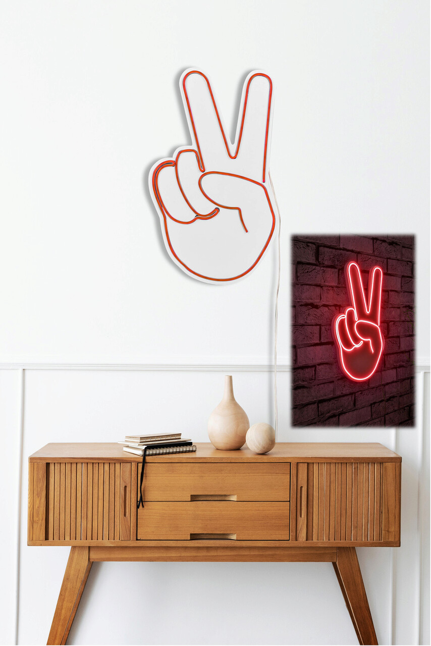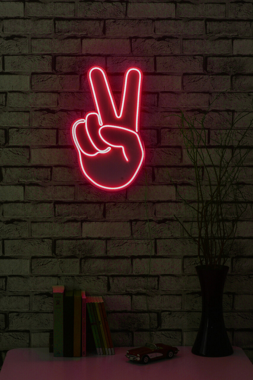Decoratiune luminoasa LED, Victory Sign, Benzi flexibile de neon, DC 12 V, Rosu