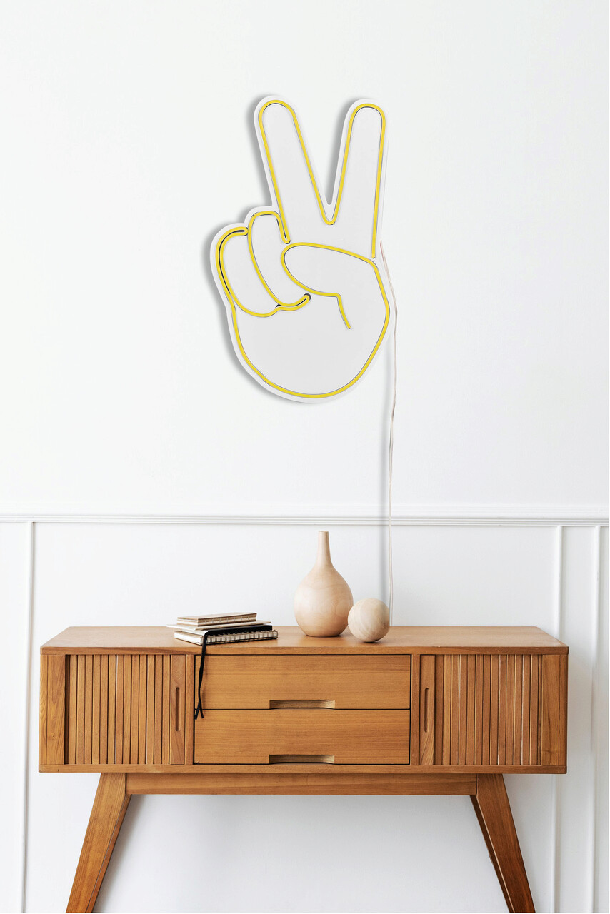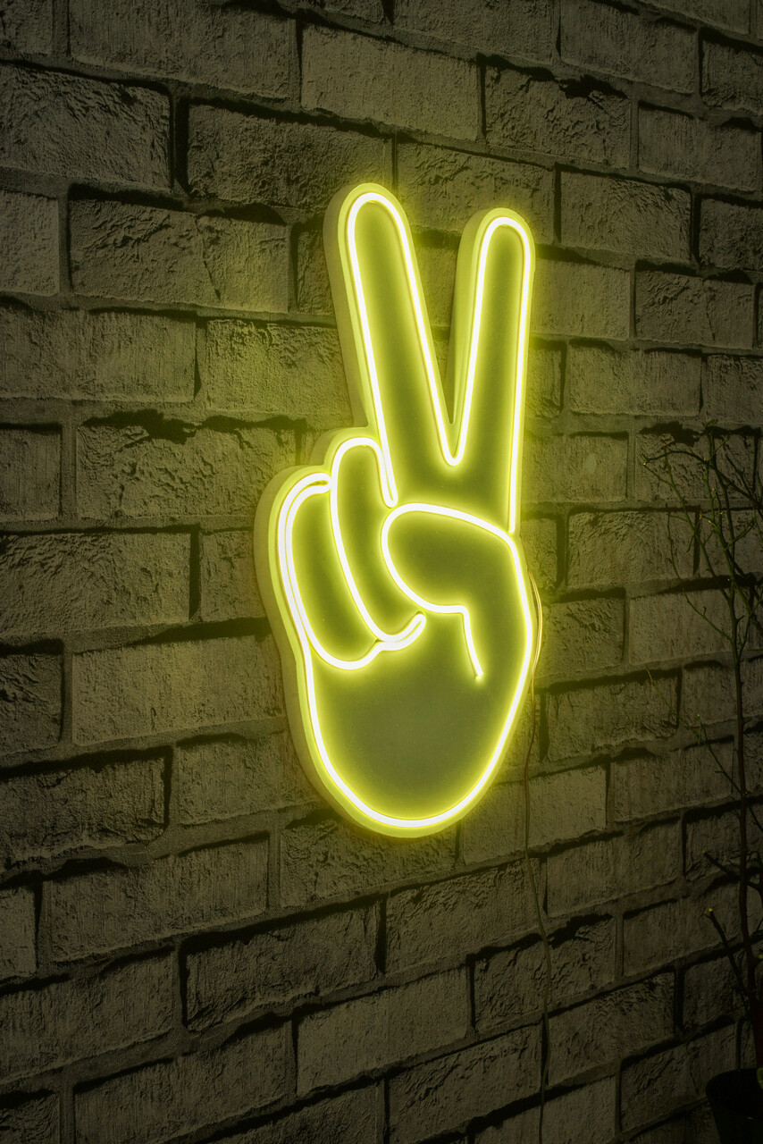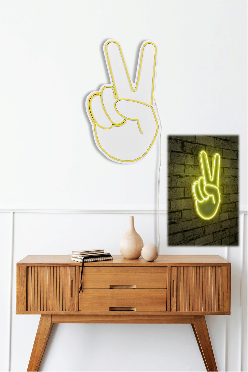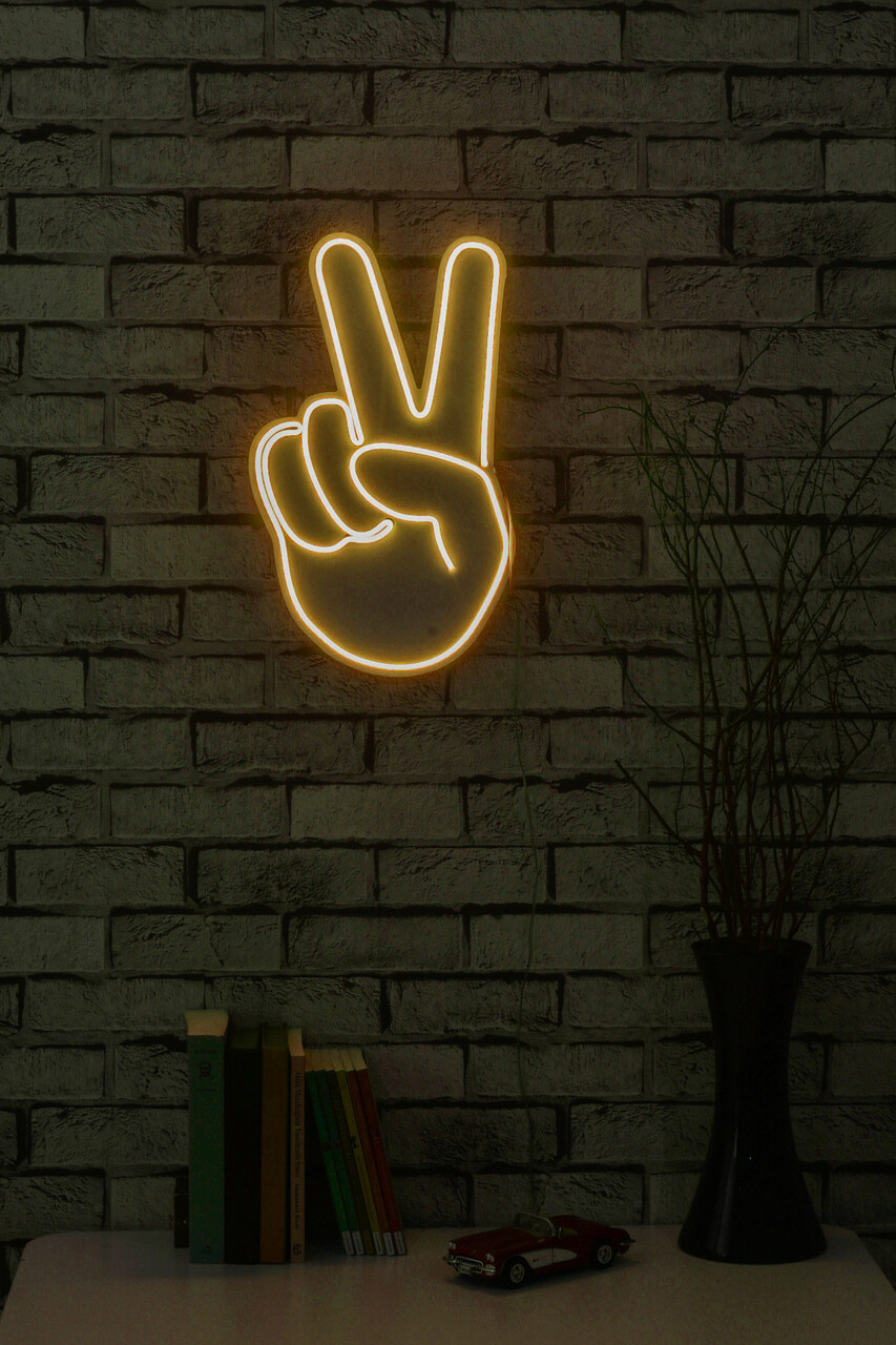 Decoratiune luminoasa LED, Victory Sign, Benzi flexibile de neon, DC 12 V, Galben