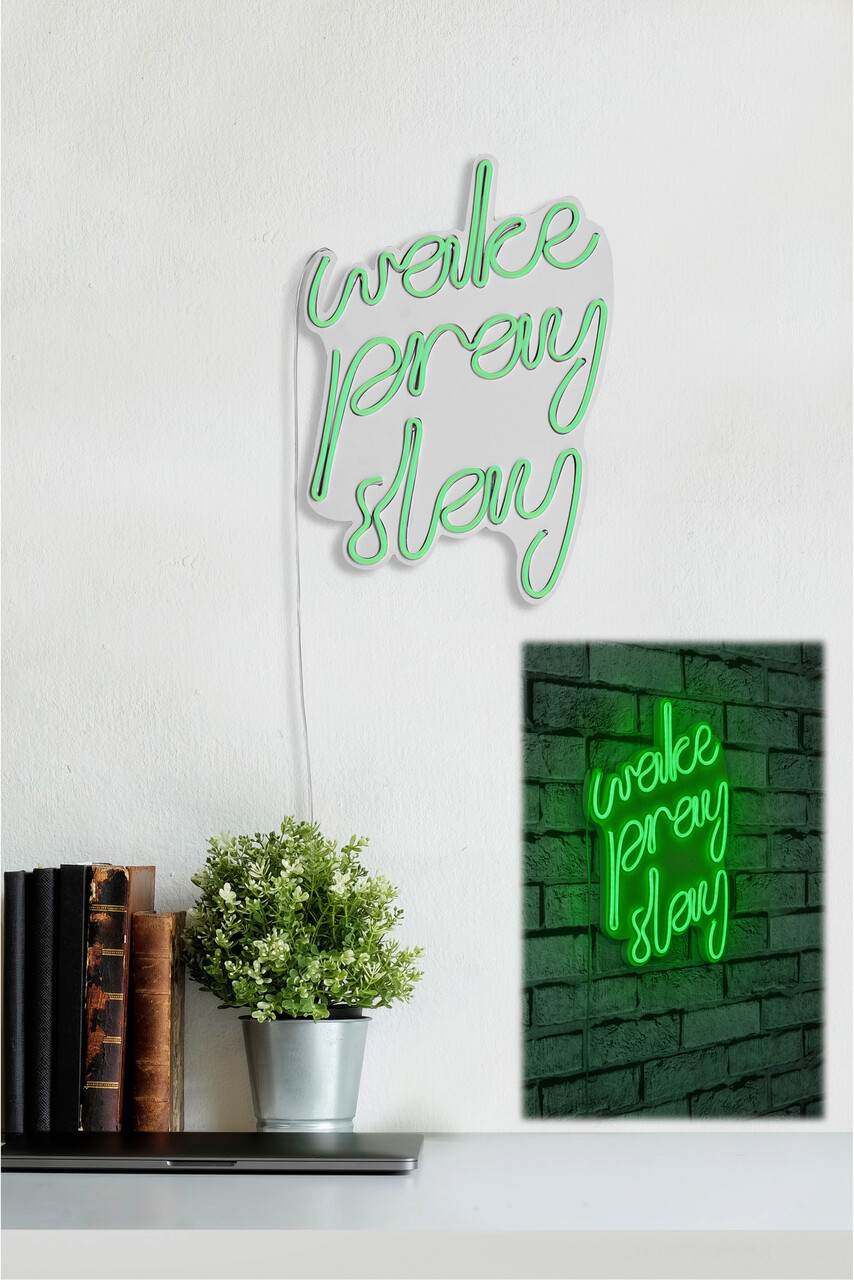 Decoratiune luminoasa LED, Wake Pray Slay, Benzi flexibile de neon, DC 12 V, Verde
