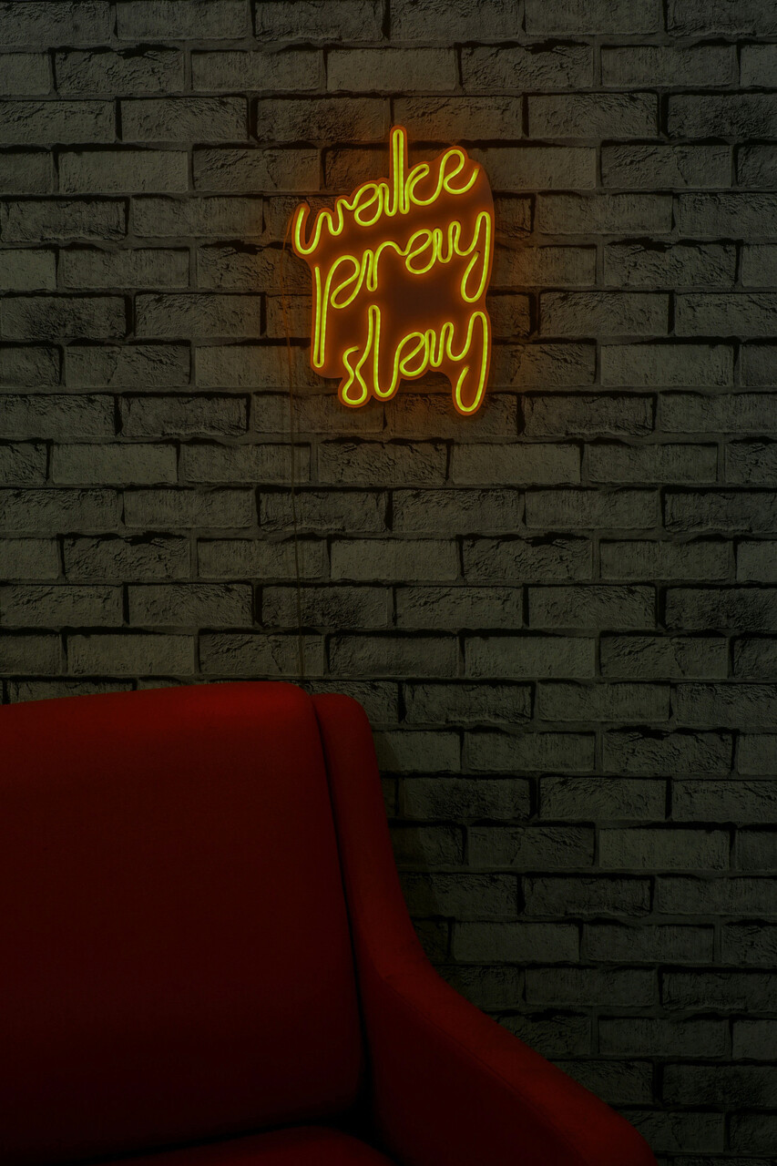 Decoratiune luminoasa LED, Wake Pray Slay, Benzi flexibile de neon, DC 12 V, Galben