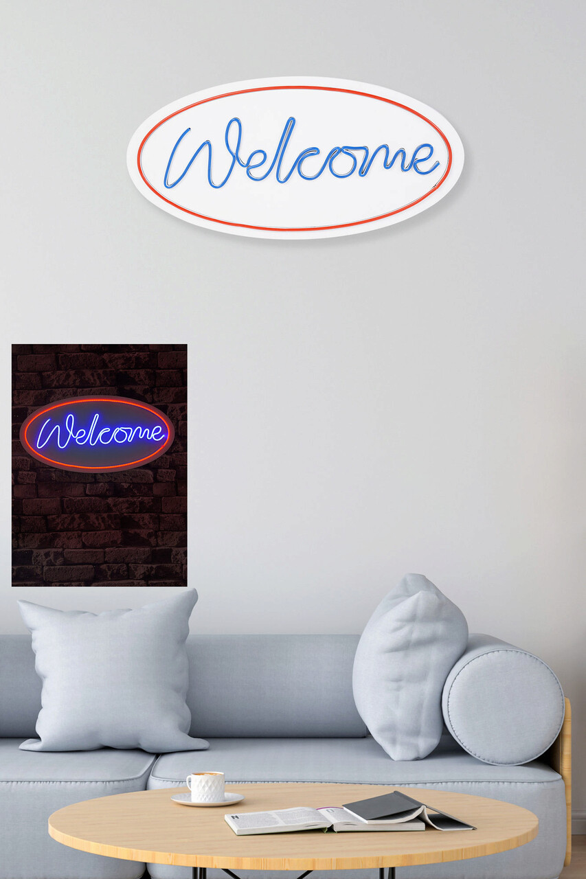 Decoratiune luminoasa LED, Welcome, Benzi flexibile de neon, DC 12 V, Rosu albastru