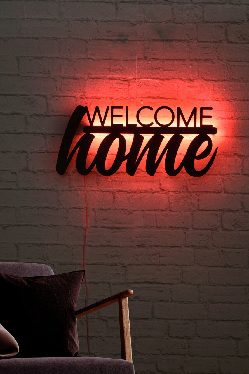 Decoratiune luminoasa LED, Welcome Home, MDF, 60 LED-uri, Rosu