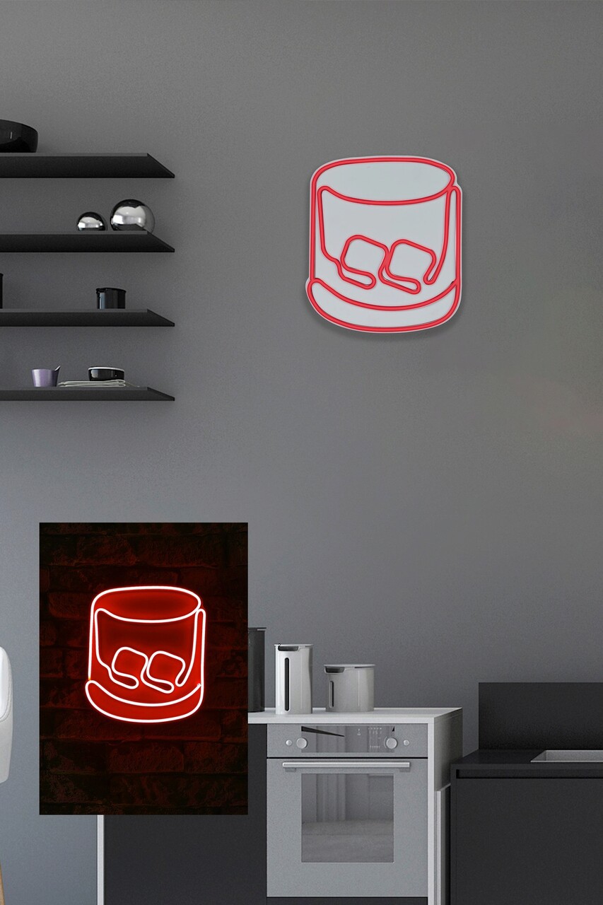 Decoratiune luminoasa LED, Whiskey Old Fashioned, Benzi flexibile de neon, DC 12 V, Rosu