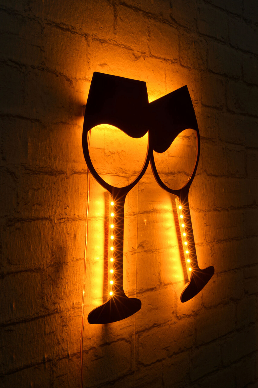 Decoratiune luminoasa LED, Wine Glasses, MDF, 60 LED-uri, Galben