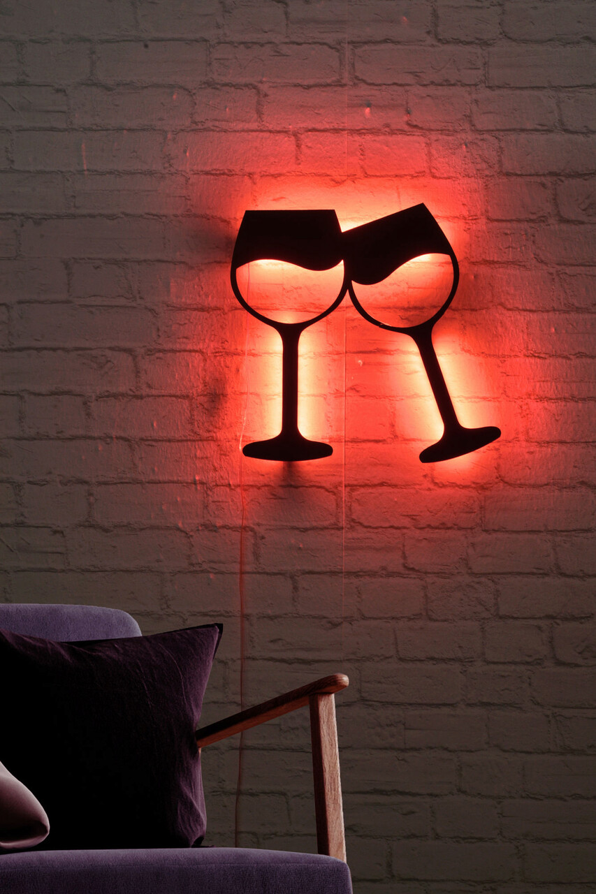 Decoratiune luminoasa LED, Wine Glasses, MDF, 60 LED-uri, Rosu