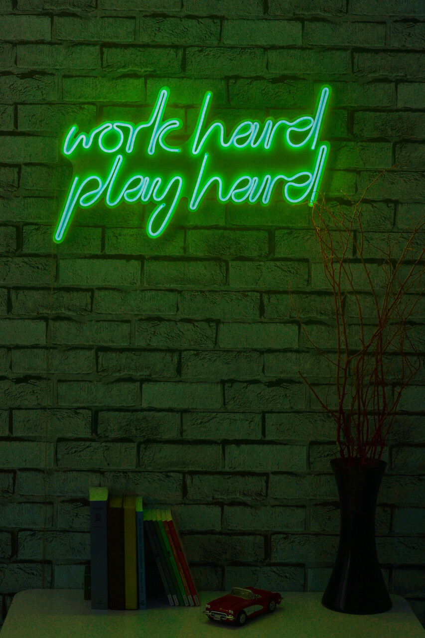 Decoratiune luminoasa LED, Work Hard Play Hard, Benzi flexibile de neon, DC 12 V, Verde
