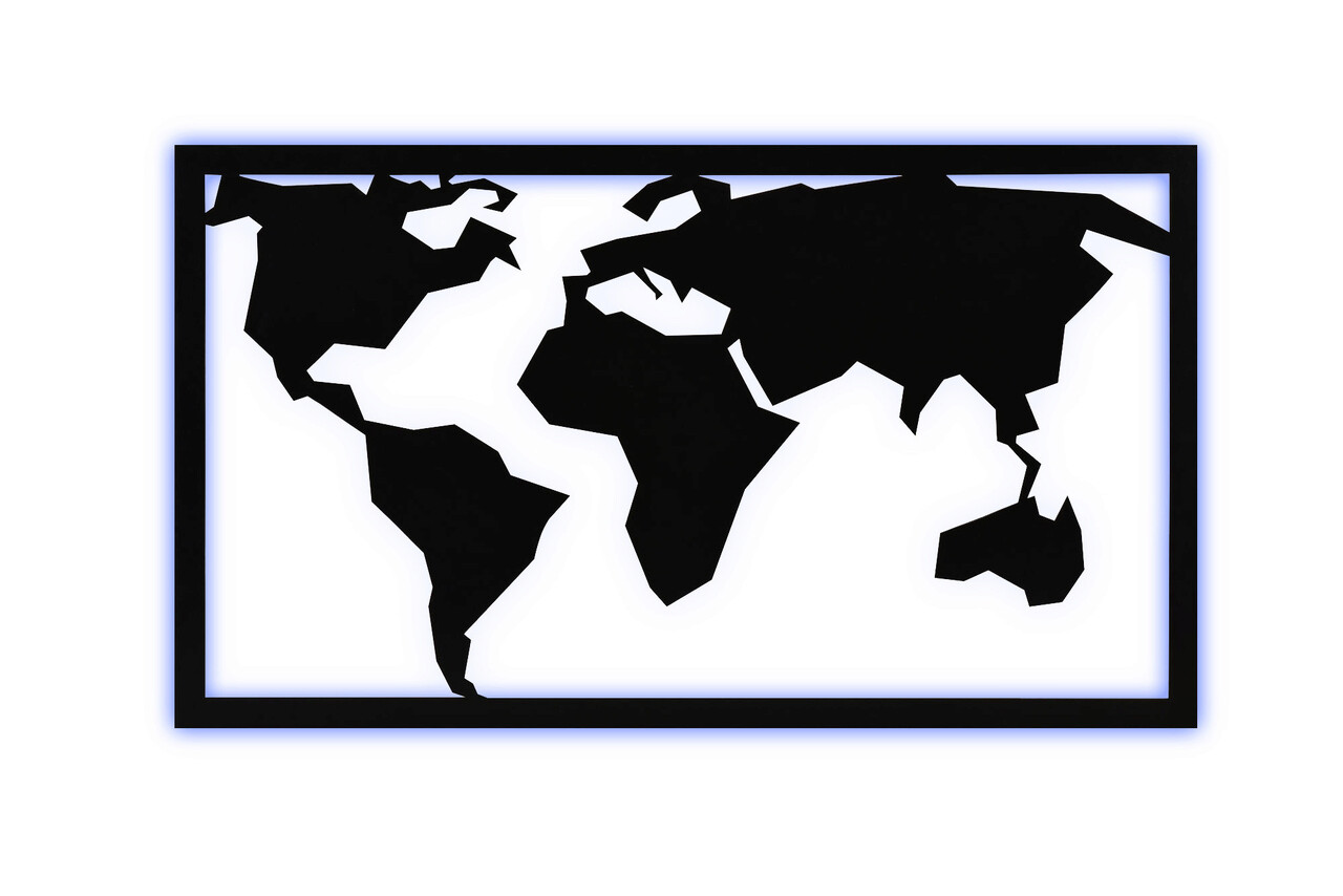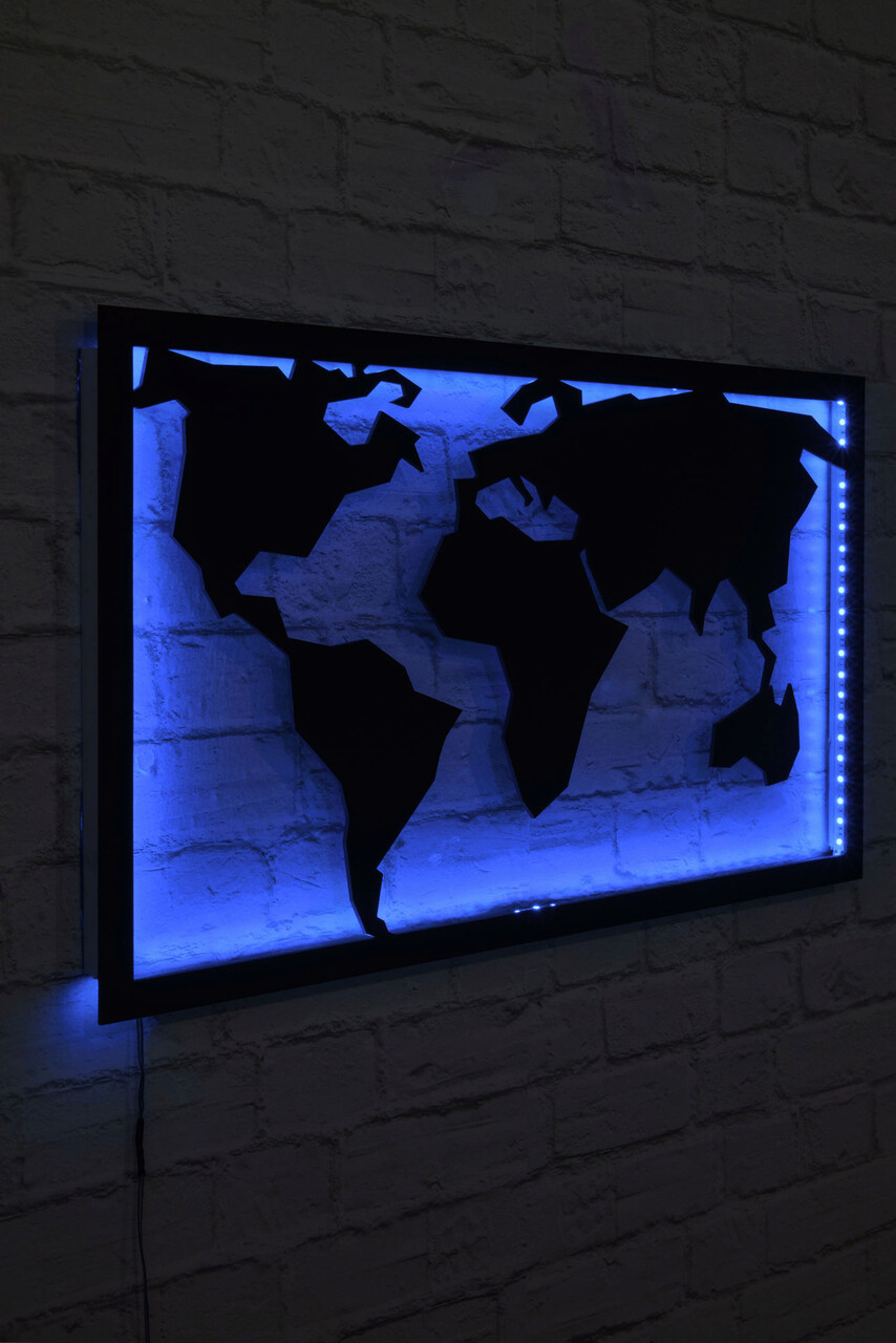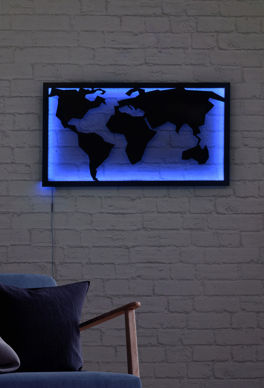 Decoratiune luminoasa LED, World Map 2, MDF, 60 LED-uri, Albastru