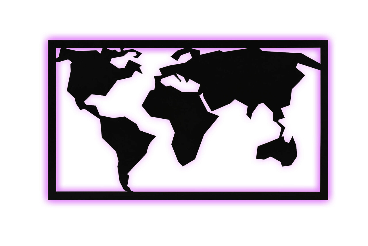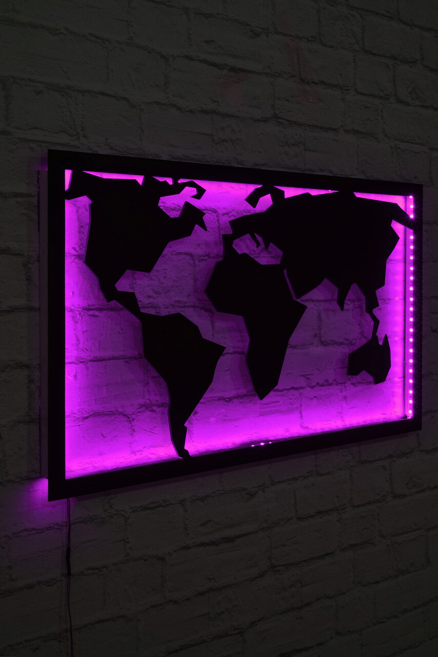 Decoratiune luminoasa LED, World Map 2, MDF, 60 LED-uri, Roz