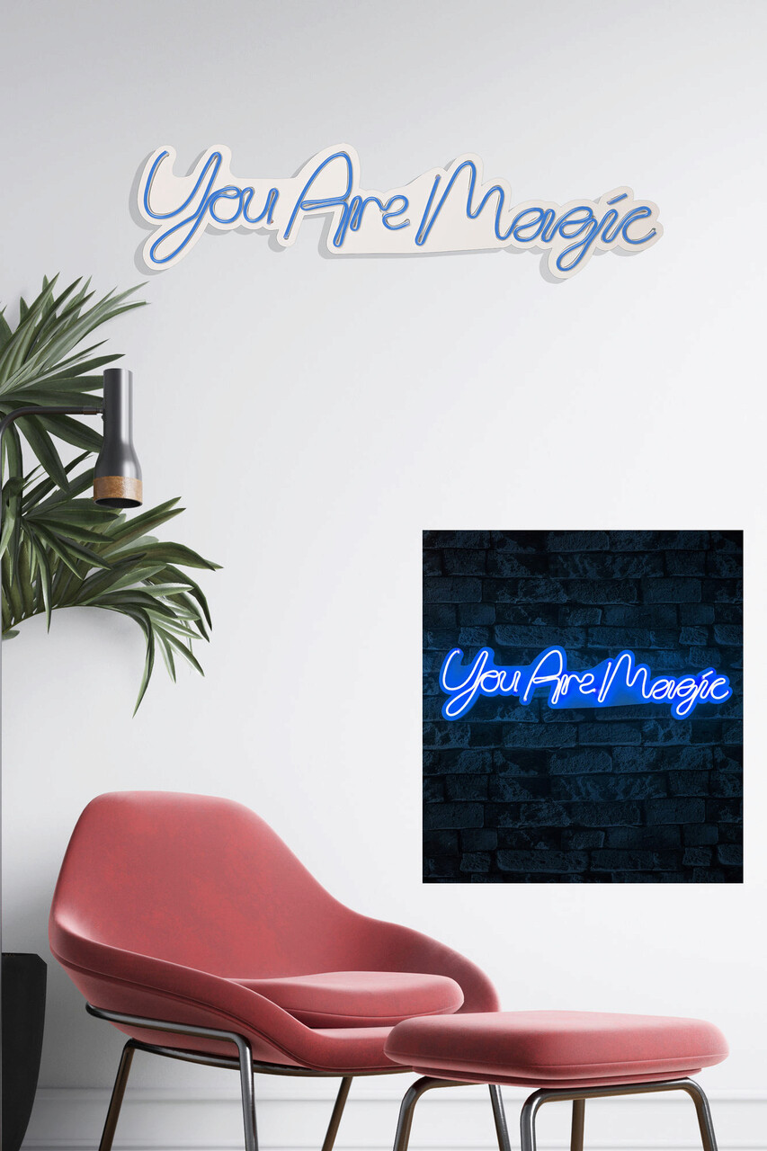 Decoratiune luminoasa LED, You are Magic, Benzi flexibile de neon, DC 12 V, Albastru