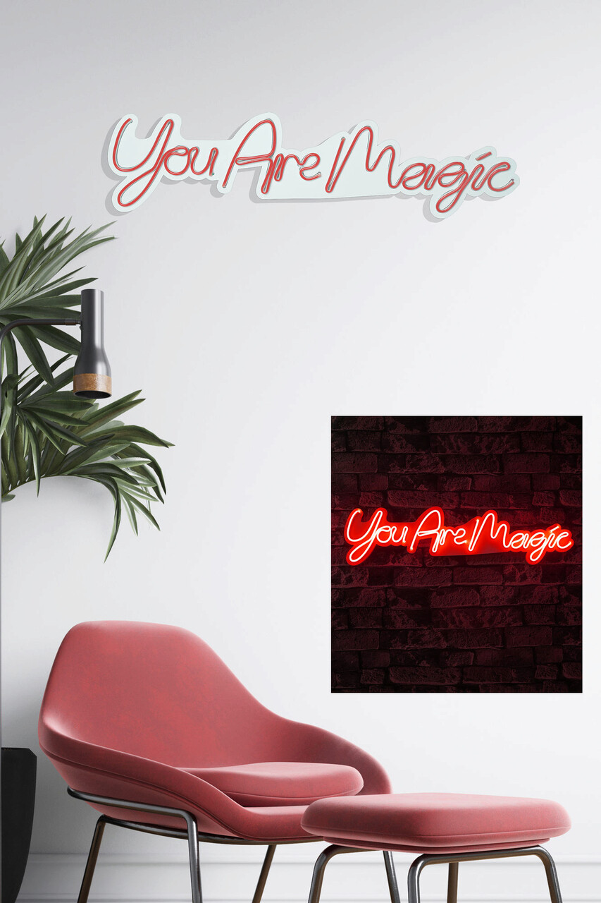 Decoratiune luminoasa LED, You are Magic, Benzi flexibile de neon, DC 12 V, Rosu