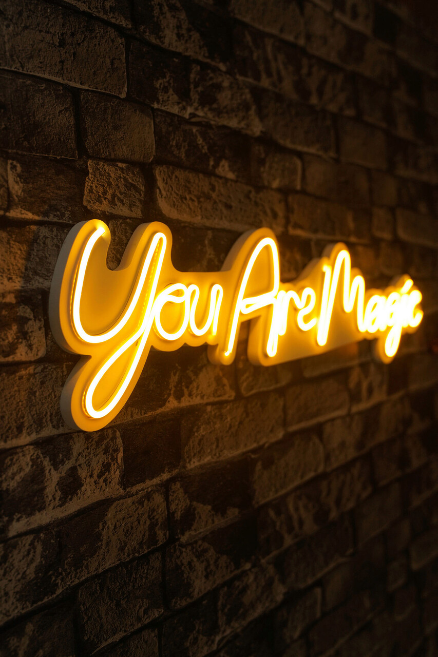 Decoratiune luminoasa LED, You are Magic, Benzi flexibile de neon, DC 12 V, Galben