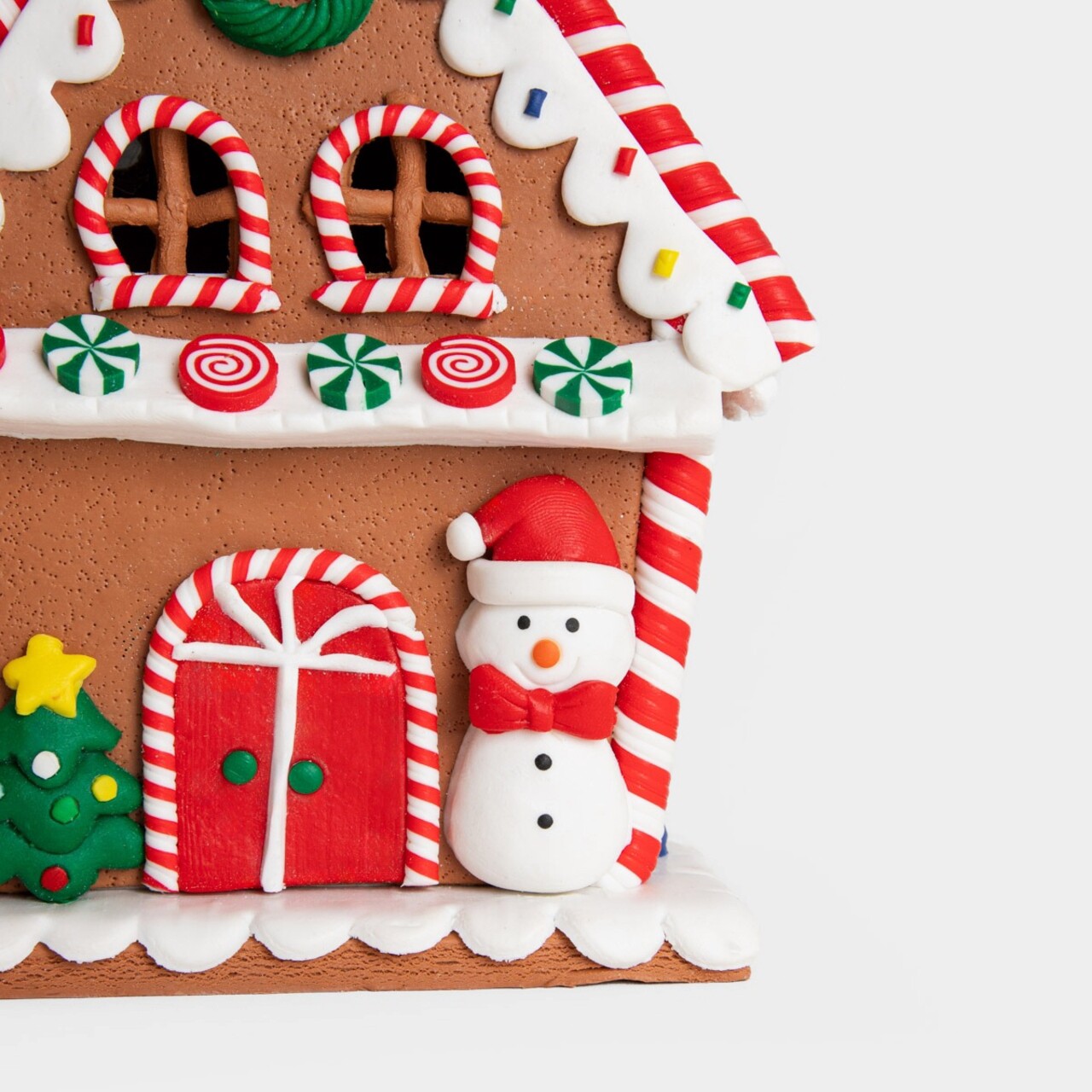 Aceasta casuta festiva din turta dulce este perfecta ca punct central pentru decoratiunile de Craciun - de la masa din sufragerie pana la comoda din dormitor, va fi un plus frumos pentru orice interior. Dimensiunile sale compacte o fac potrivita chiar si pentru spatii mai mici, aducand bucuria Craciunului in fiecare colt.
