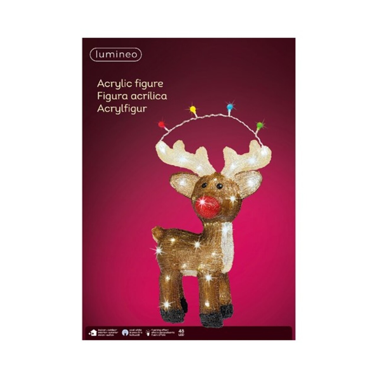 Decoratiune luminoasa pentru exterior Deer, Lumineo, 48 LED-uri, 17x33x47 cm, multicolor