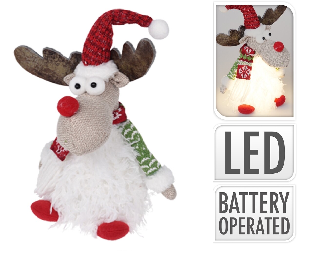 Decoratiune luminoasa Reindeer, 14x22 cm, poliester, alb/rosu