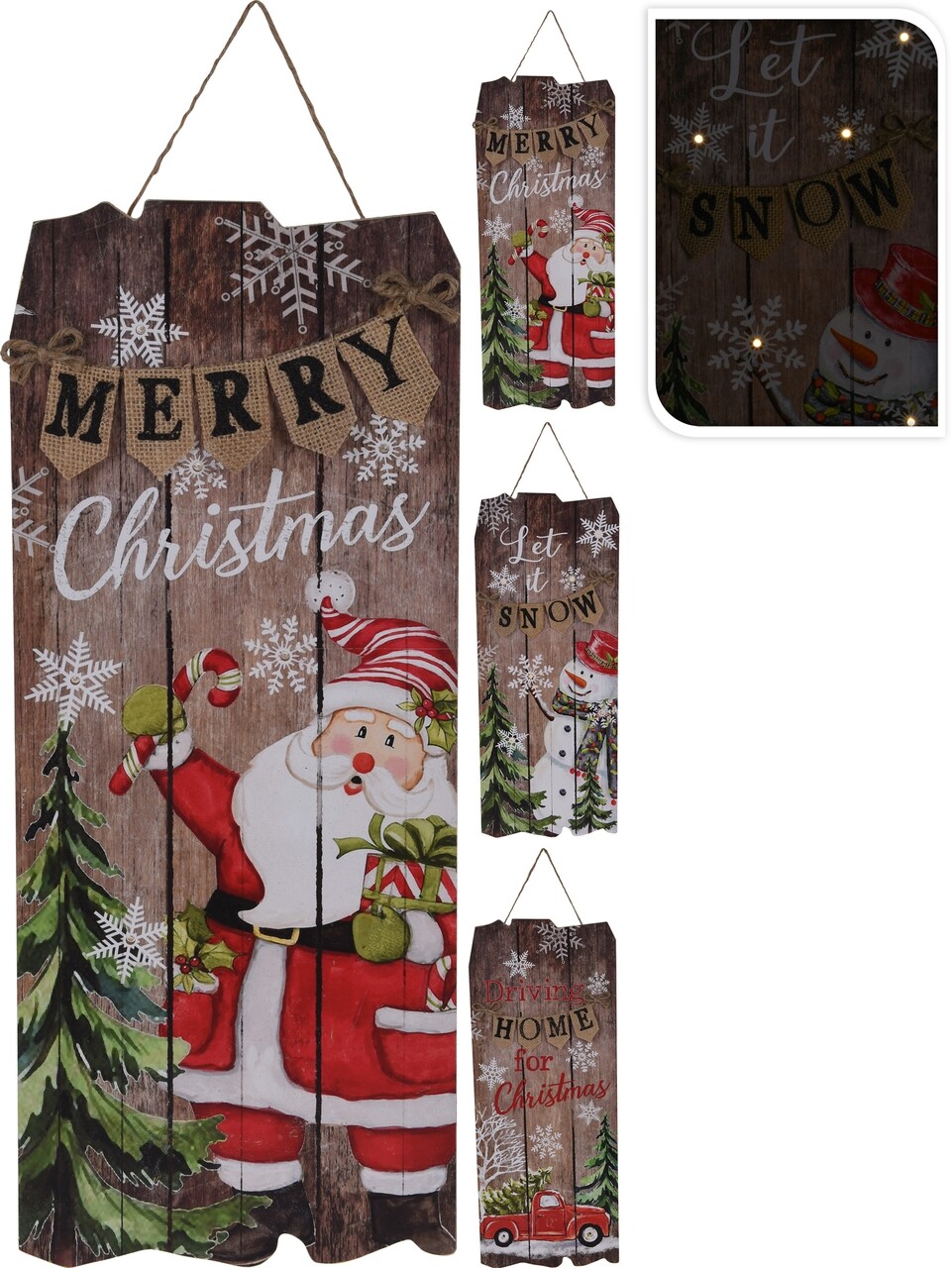 Decoratiune luminoasa Santa, 6 LED-uri, 20x50cm, lemn, multicolor