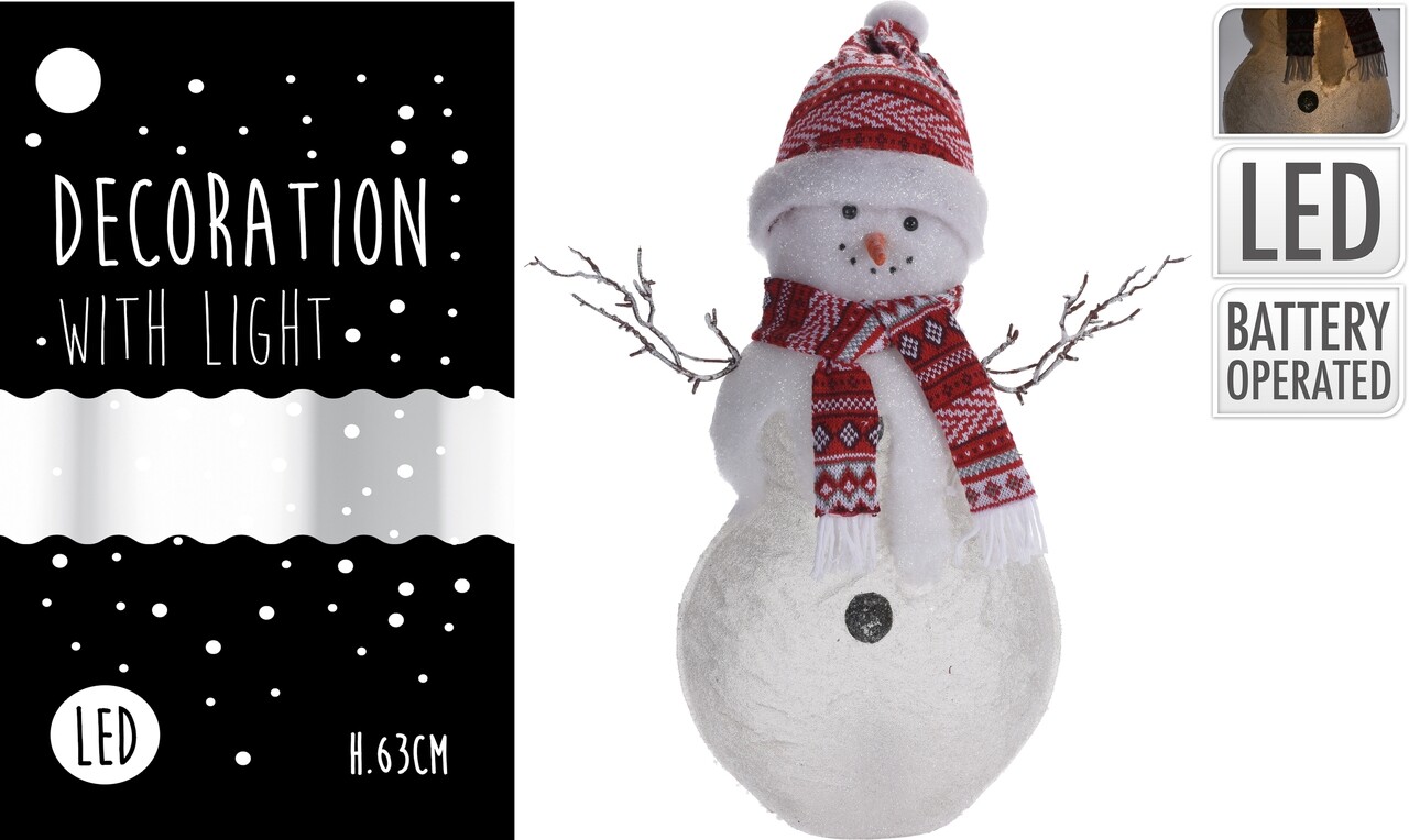 Decoratiune luminoasa Snowman, 28x16.5x63 cm, polipropilena, alb/rosu