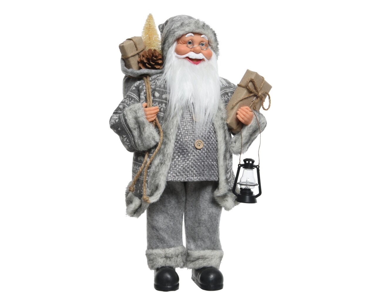 Decoratiune Mos Craciun cu lampa si sac, Decoris, 20x10x30 cm, poliester
