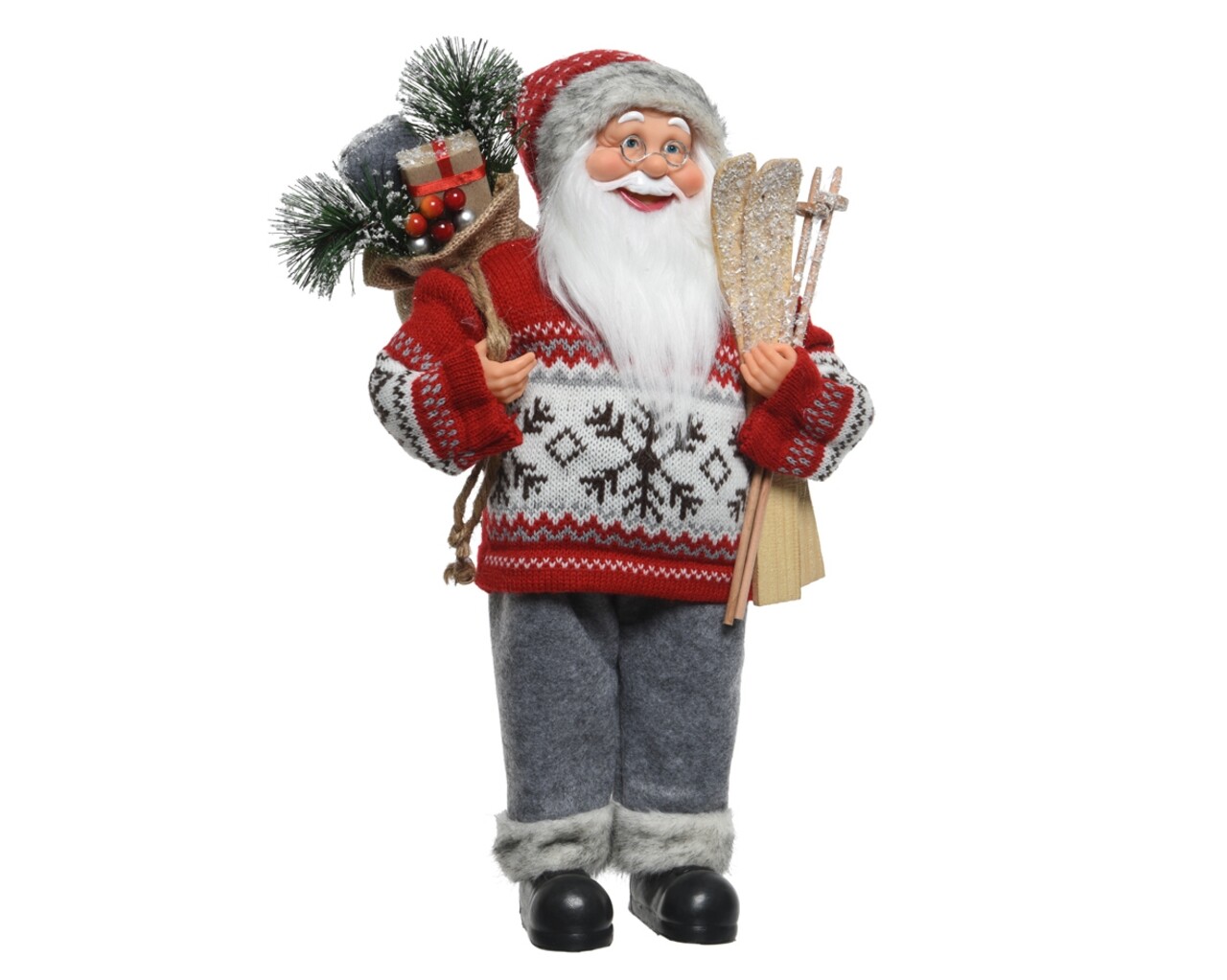 Decoratiune Mos Craciun cu schiuri si sac, Decoris, 24x14x45 cm, poliester