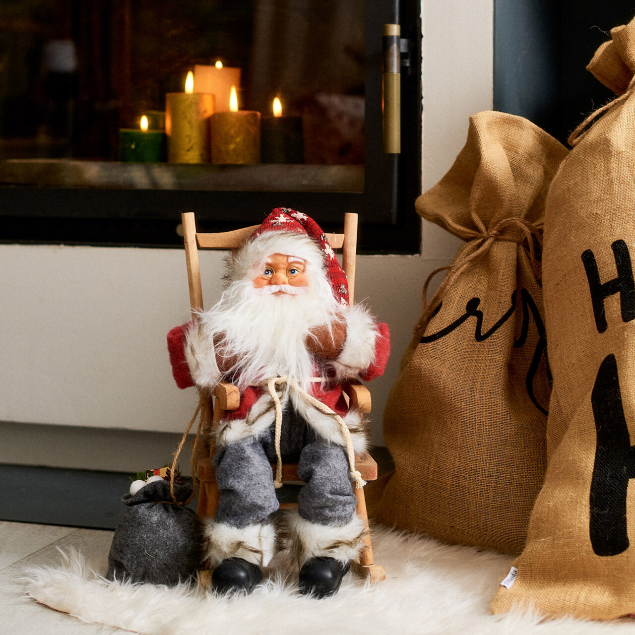 Decoratiunea Mos Craciun pe balansoar va crea o atmosfera unica in locuinta dumneavoastra. Decoratiunea CLAUSE prevazuta cu balansoar si sac cu cadouri reprezinta confortul si traditia de Craciun. Se va potrivi perfect in amenajarile clasice sau moderne, completandu-le frumos. Este, de asemenea, ideala pentru a fi oferita cadou.