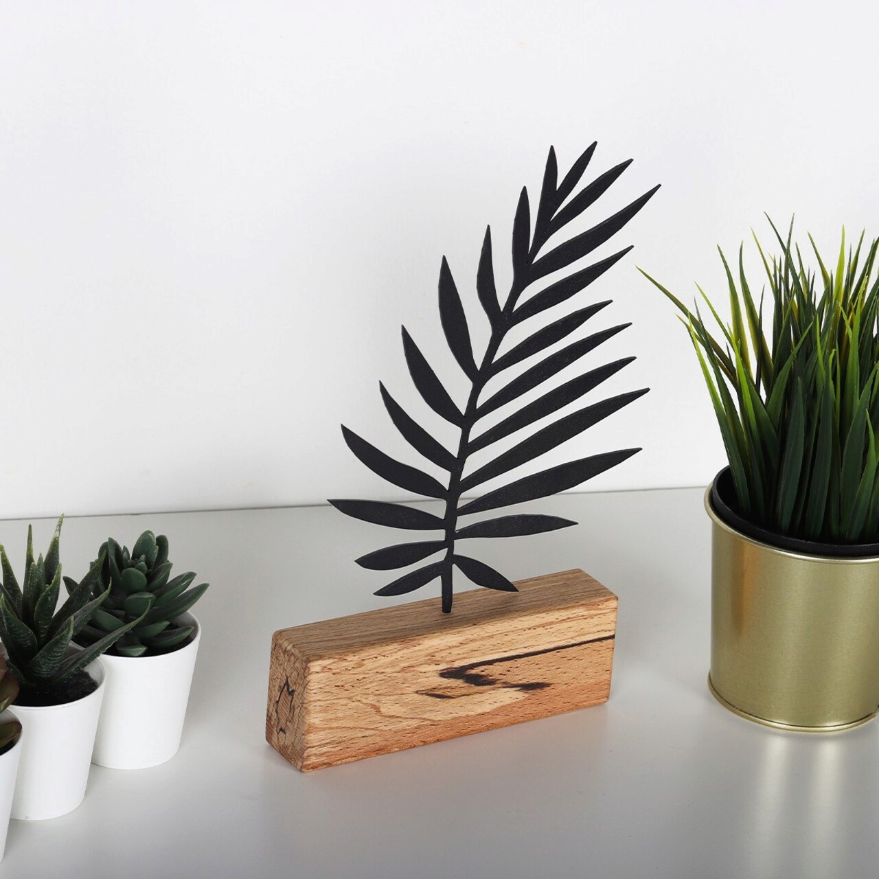 Decoratiune, Palm Leaf, 17x27x3.5 cm, Metal, Negru
