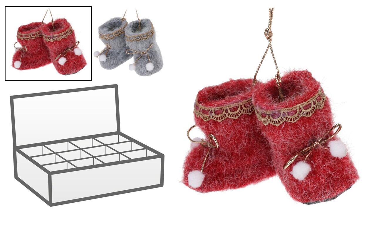 Decoratiune pentru brad Shoe Hanging v1, Excellent Houseware, 7.5x5x7 cm, poliester, rosu