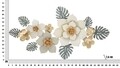 Panou decorativ de perete 3D format din flori si frunze in culori moi si patrunzatoare, infrumusetat cu finisaje aurii.