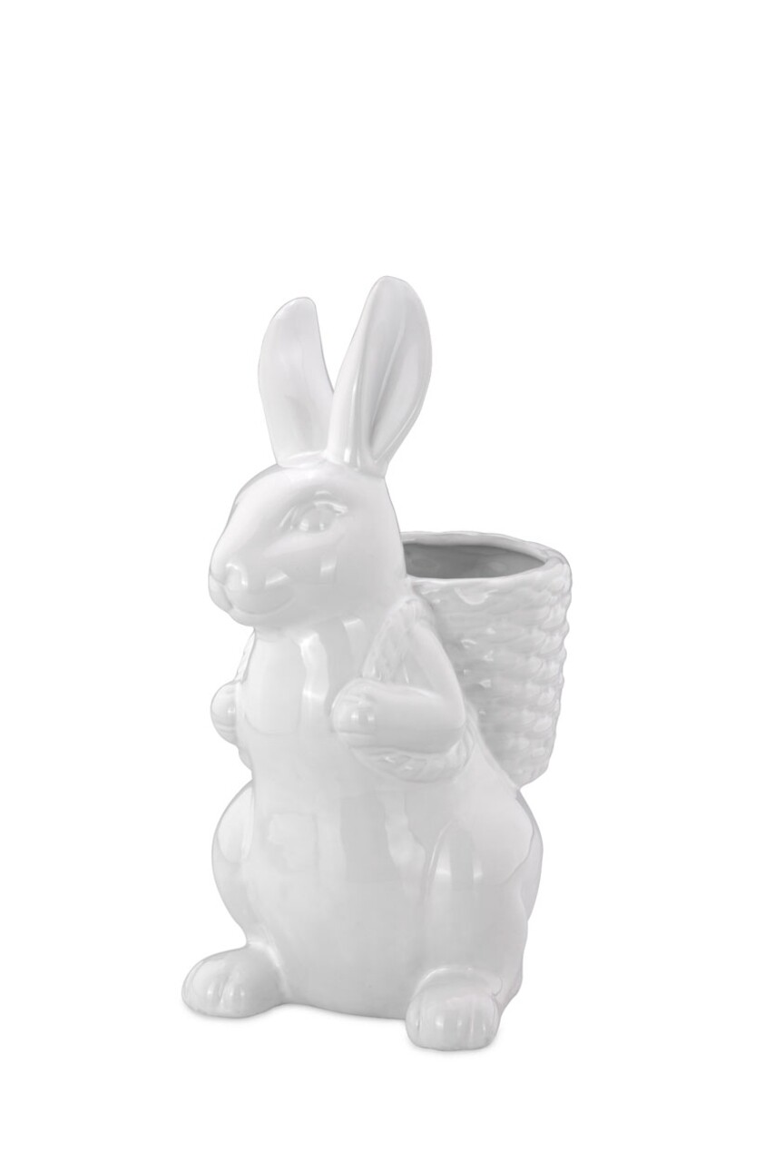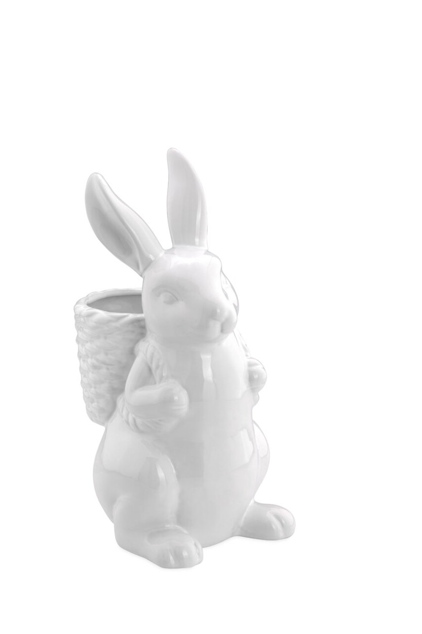 Decoratiune Rabbit with Basket, Hermann Bauer, portelan, alb