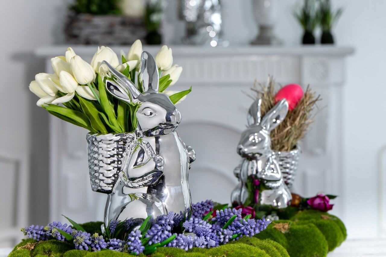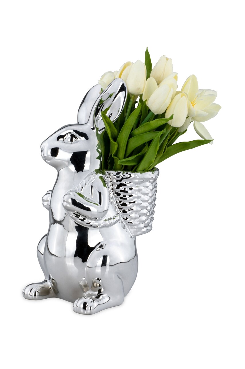 Decoratiune Rabbit with Basket, Hermann Bauer, portelan, argintiu