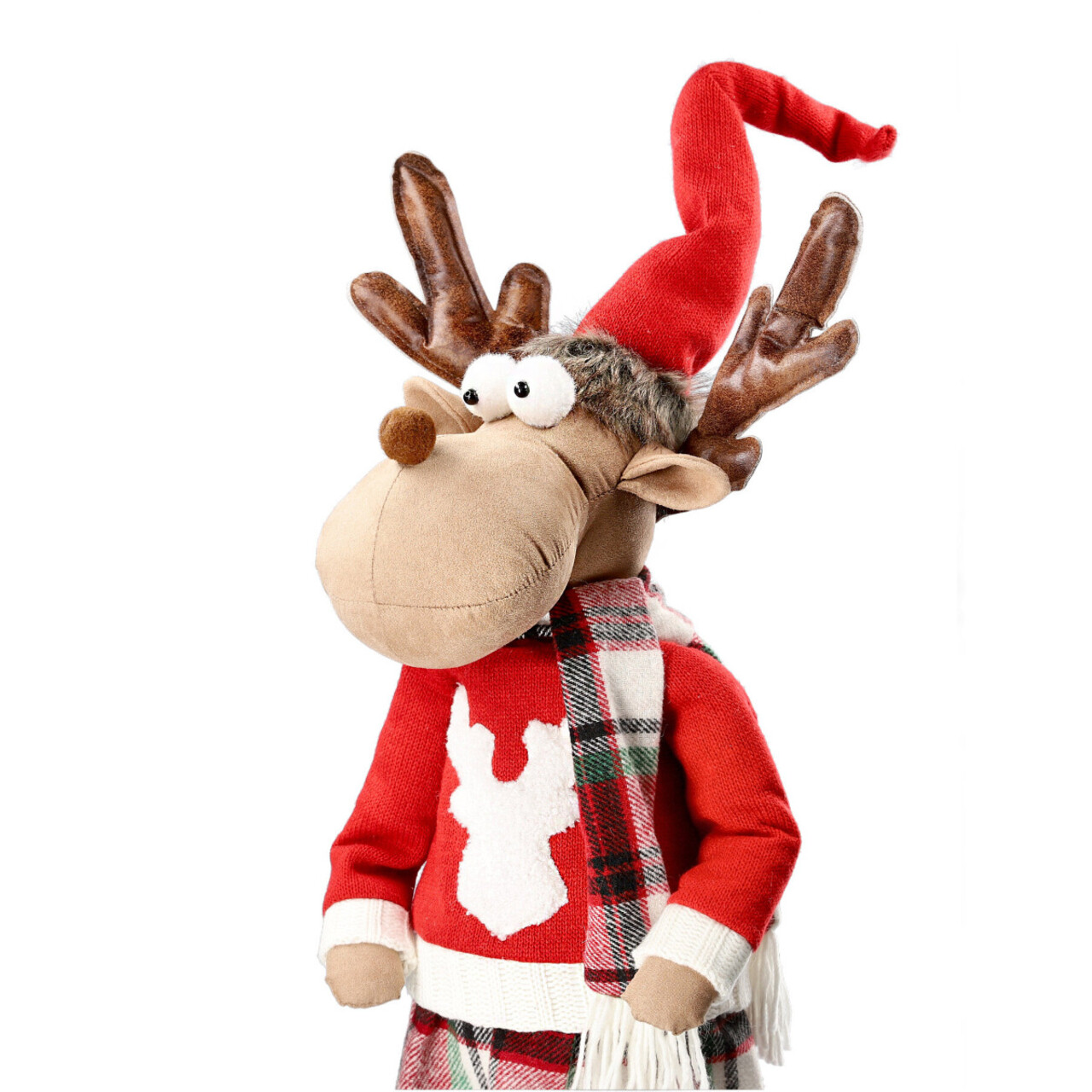 Decoratiunea ANTTI este o decoratiune vesela, in culorile tipice Craciunului. Figurina reprezinta o femela de ren imbracata intr-un pulover si o fusta calduroase de Craciun. Capul este insa decorat cu o caciula rosie de Mos Craciun iar gatul este infasurat cu o esarfa de Craciun. Culorile sunt rosu, verde si alb. Cu o inaltime de pana la 104 cm, aceasta minunata decoratiune poate schimba complet aspectul interiorului locuintei dvs. de Craciun.