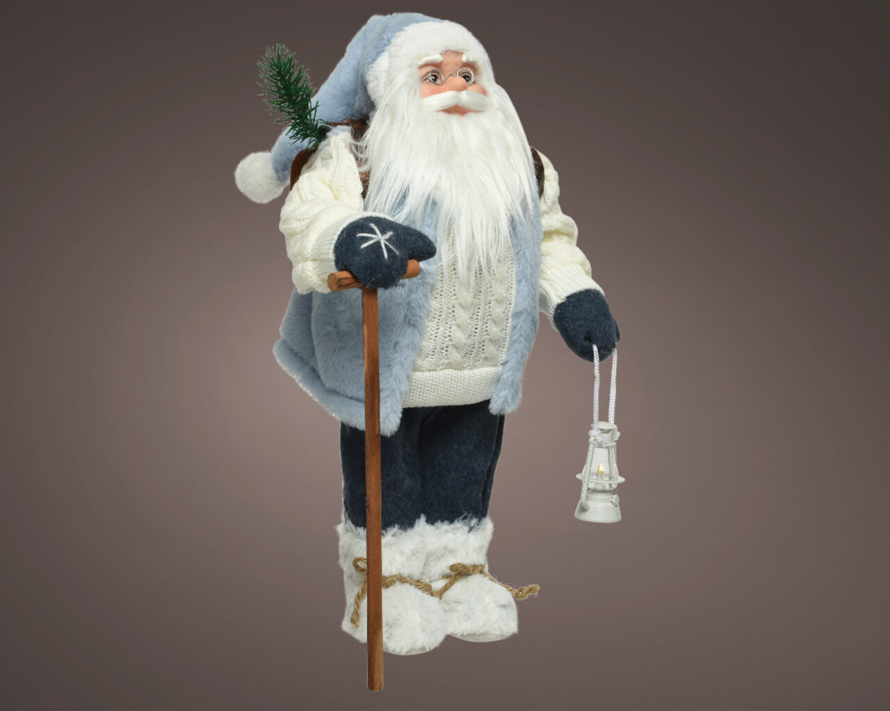Decoratiune Santa w stick &lantern, Decoris, 16x21x45 cm, poliester, albastru