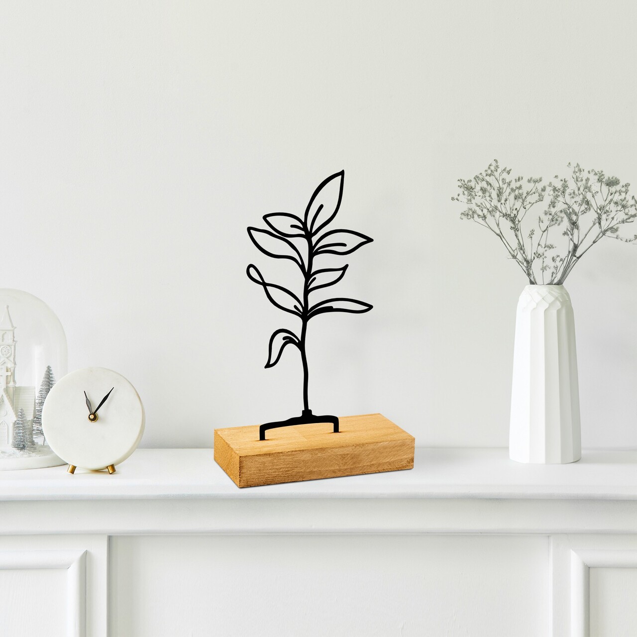 Decoratiune, Sapling, 28x8x17 cm, Metal, Lemn/Negru