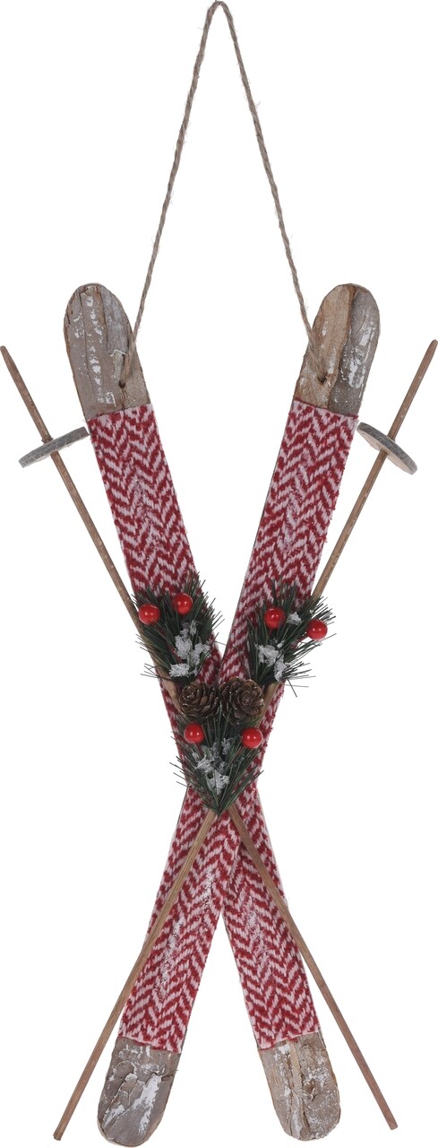 Decoratiune Skis, lemn, rosu/maro