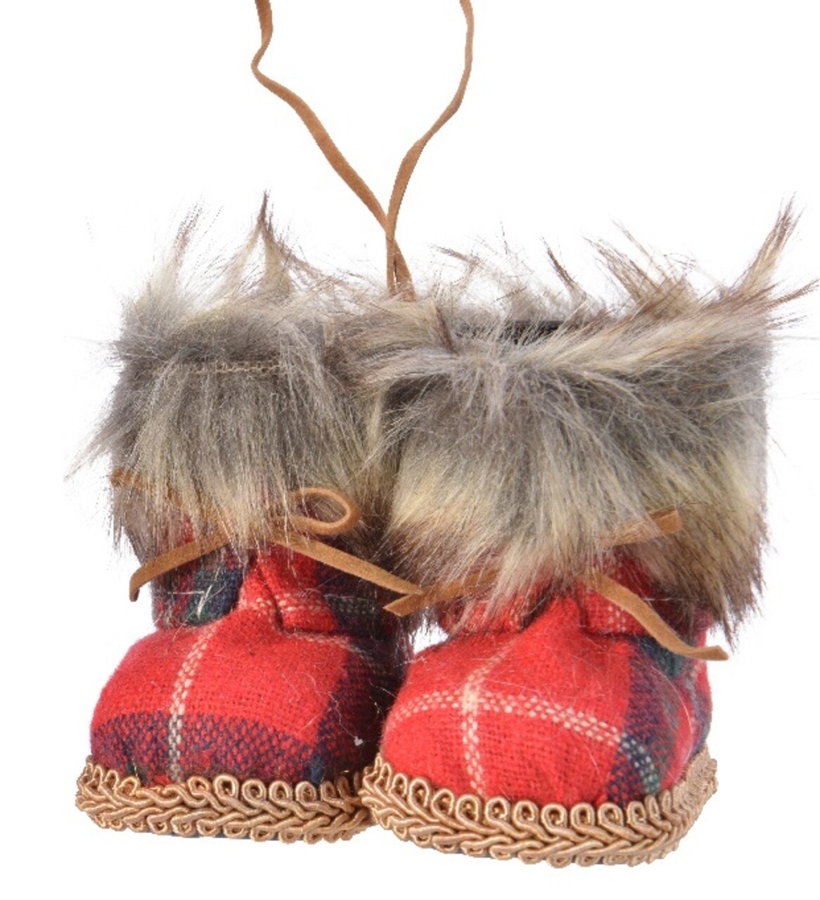Decoratiune Snow boots, Decoris, poliester, rosu/alb