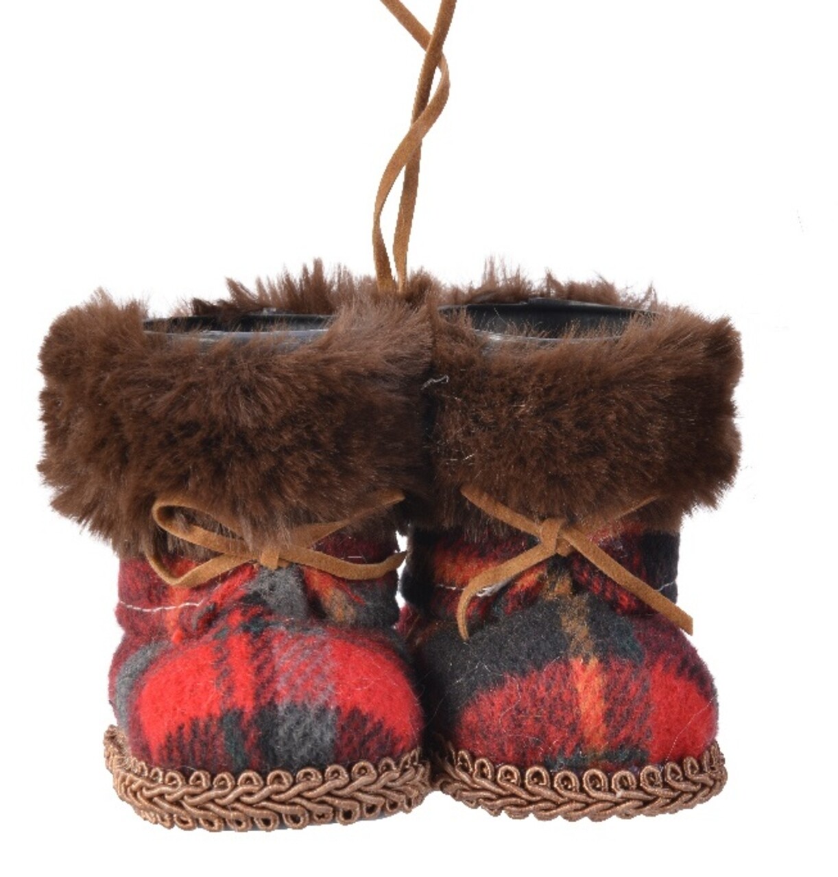 Decoratiune Snow boots, Decoris, poliester, rosu/maro