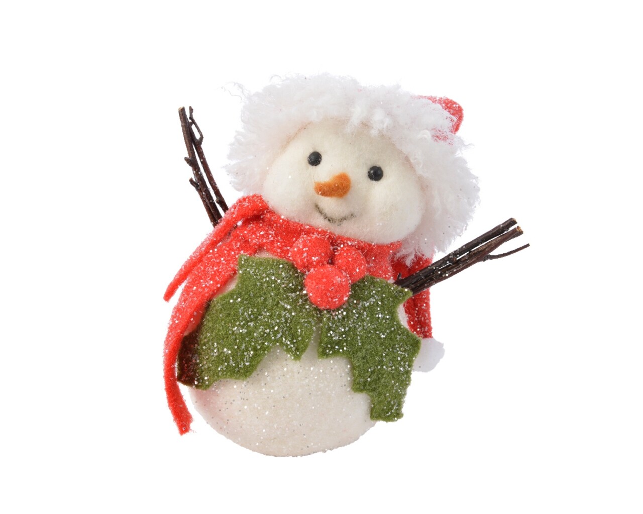 Decoratiune Snowman, Decoris, felt, alb/verde/rosu