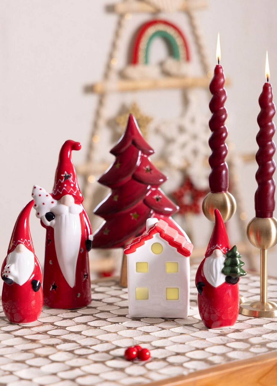 Decoratiune, SUS0122, 5x5x15 cm, Ceramica, Rosu/Alb