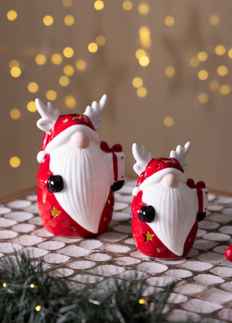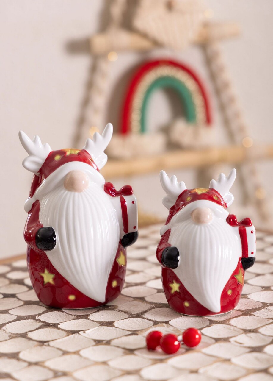 Decoratiune, SUS0129, 8x7x11 cm, Ceramica, Rosu/Alb