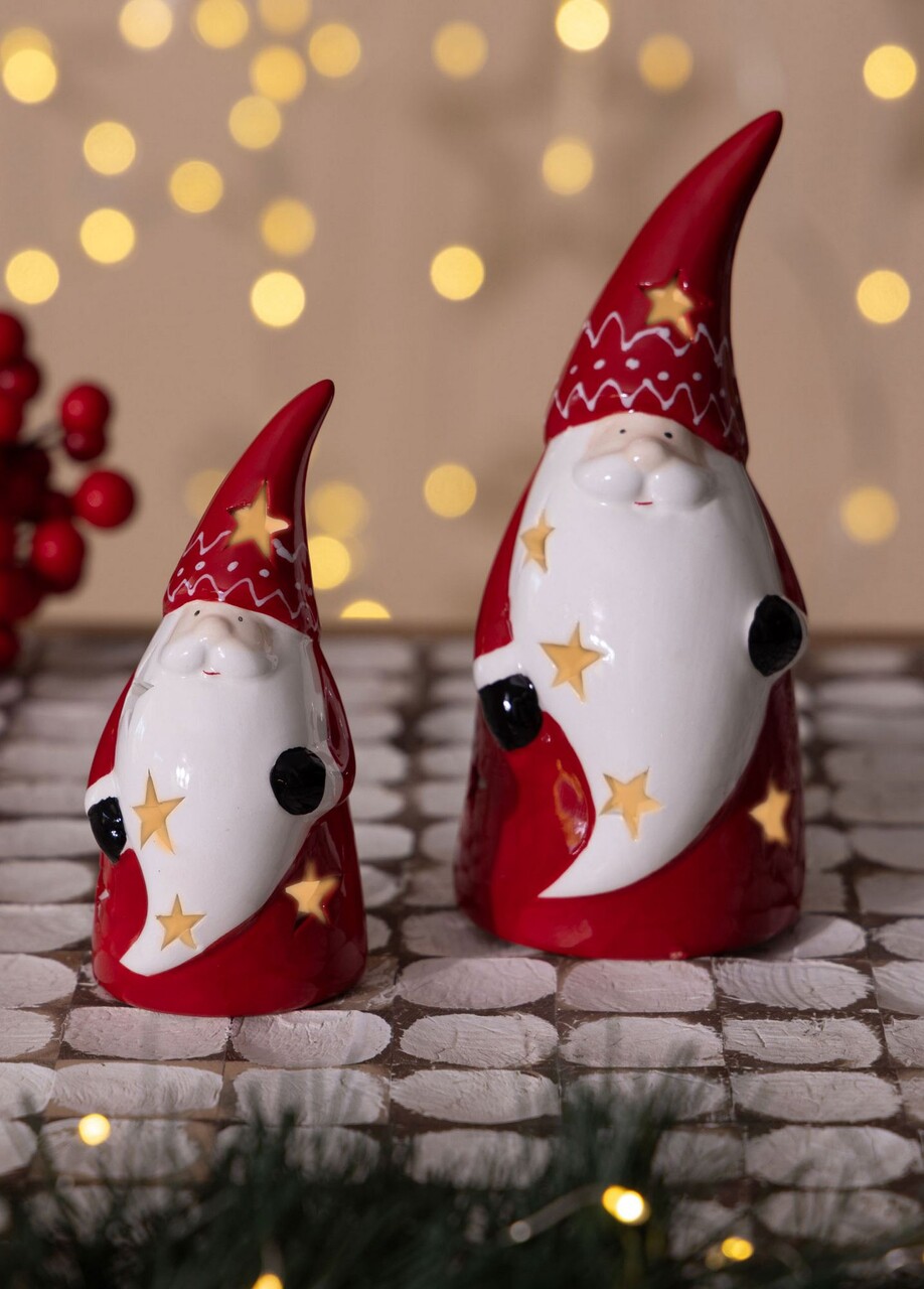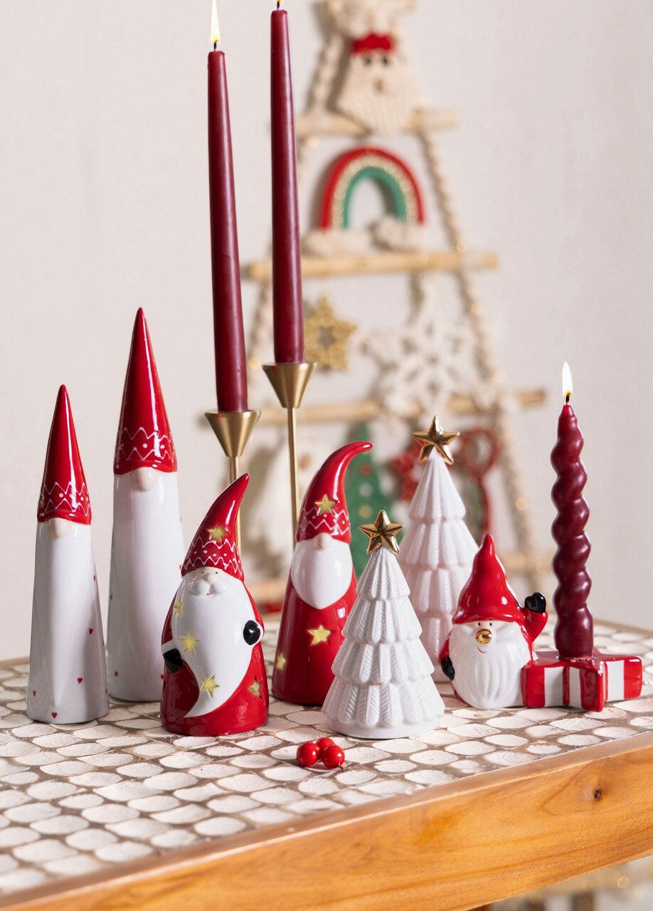 Decoratiune, SUS0146, 5x5x11 cm, Ceramica, Rosu/Alb