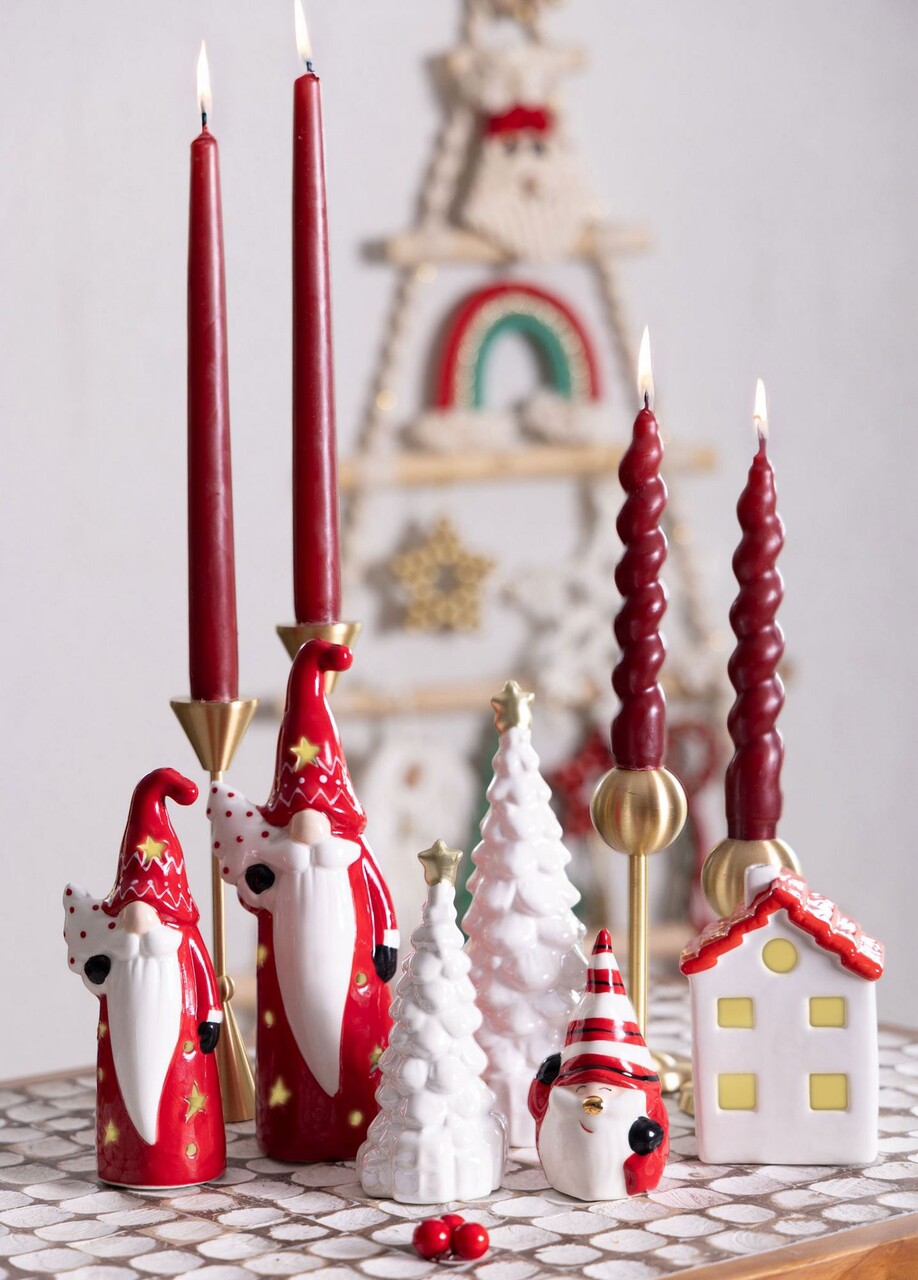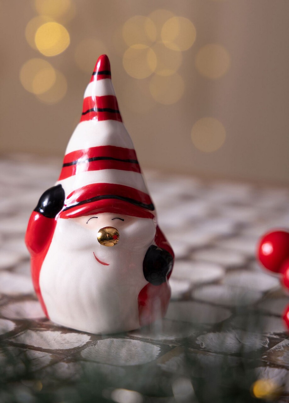 Decoratiune, SUS0148, 7x6x10 cm, Ceramica, Rosu/Alb