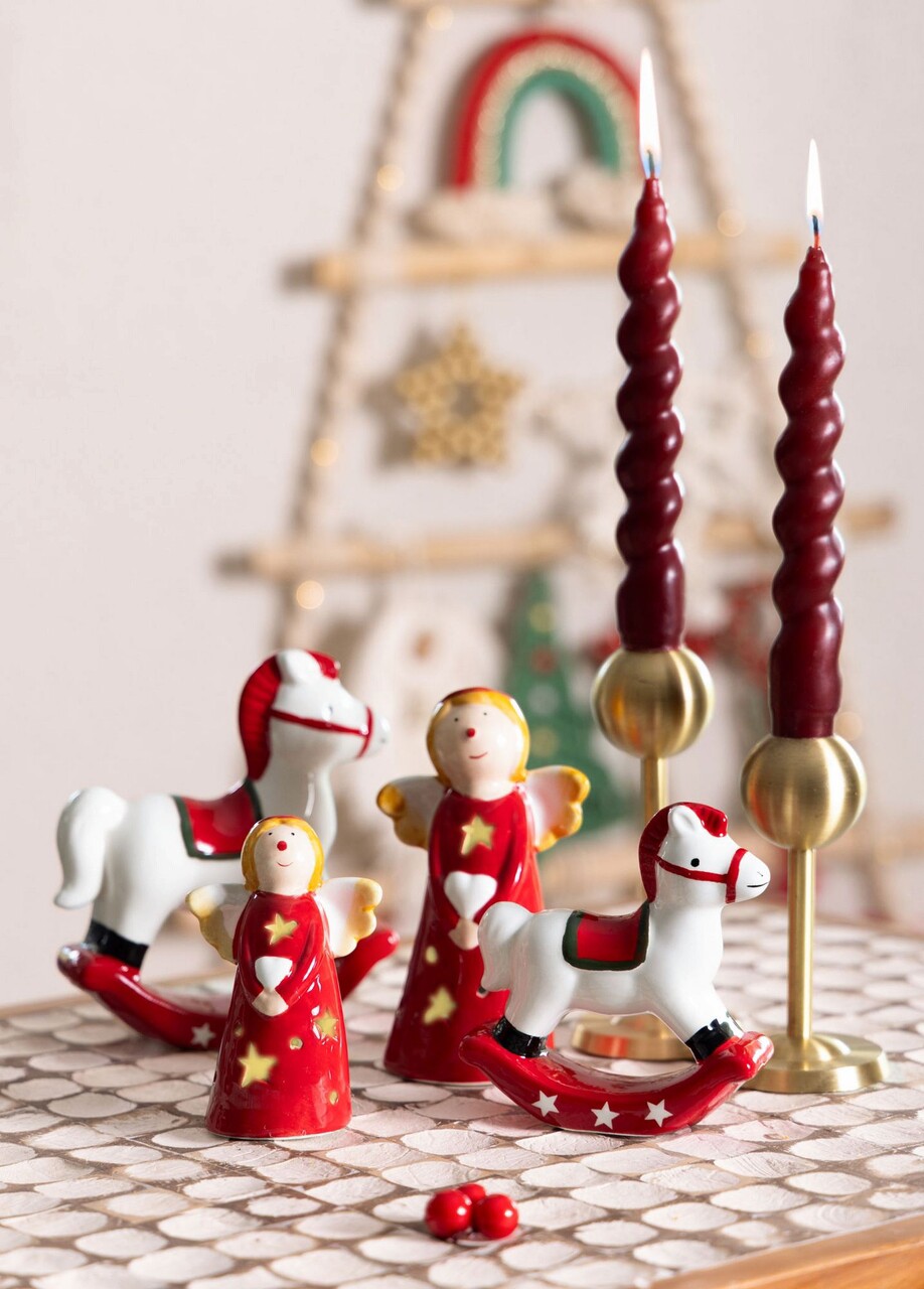 Decoratiune, SUS0163, 7x5x10 cm, Ceramica, Rosu/Alb
