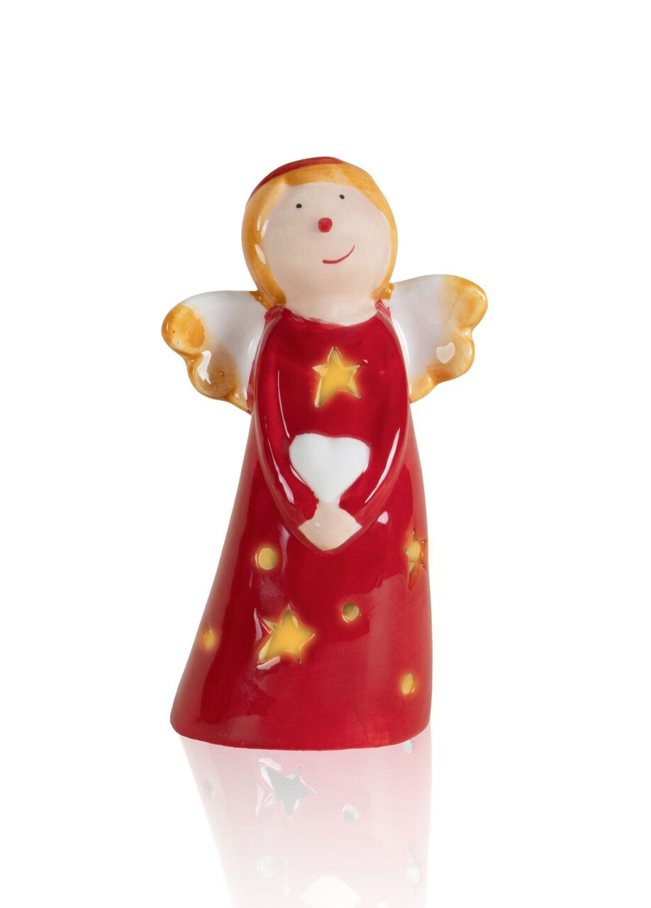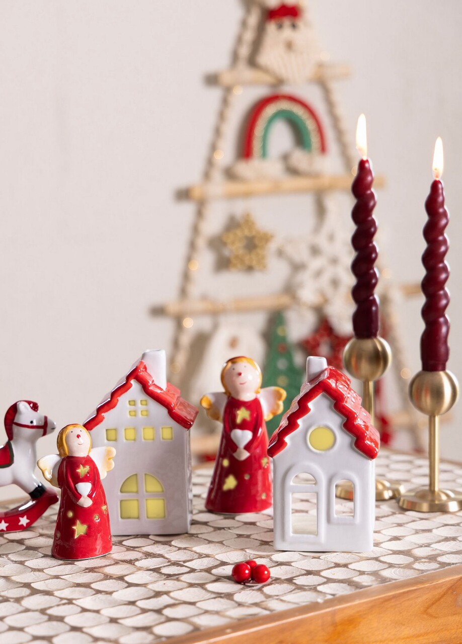Decoratiune, SUS0164, 8x6x14 cm, Ceramica, Rosu/Alb